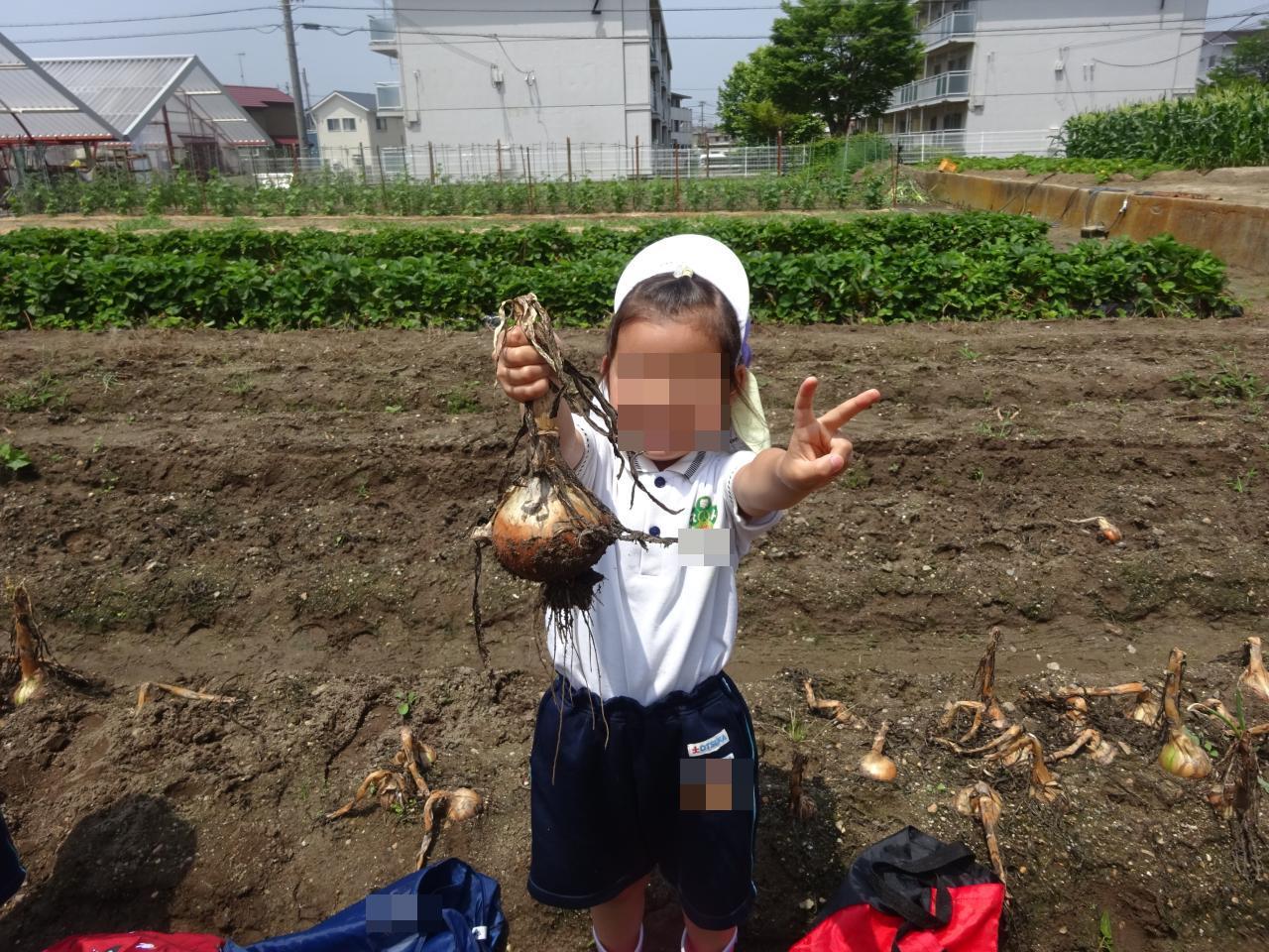 大きな玉ねぎが採れた時には「見て見て!」とニコニコ笑顔で見せてくれる姿がありました😄