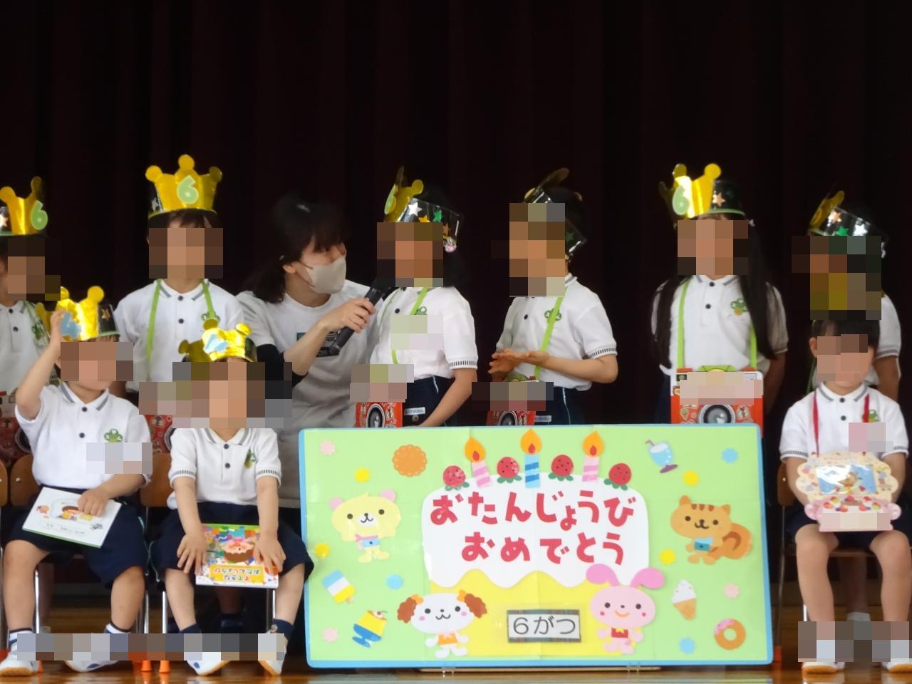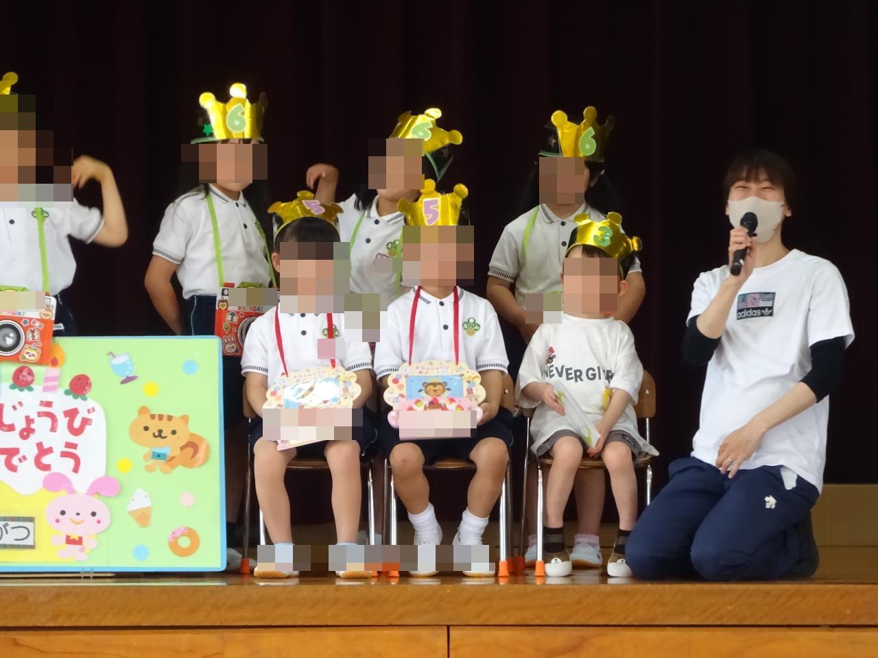 14日(水)全園児が大ホールに集まり、みんなで6月の誕生日会を行いました🎂🎉