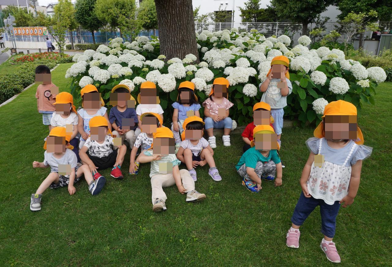 幼稚園の前にある三角花壇を目指して、元気いっぱい出発~✨