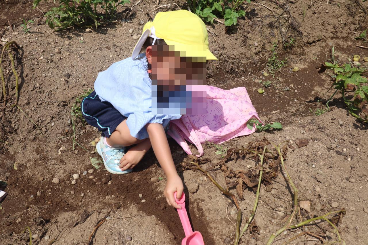 じゃがいもが穫れた時は「見て―!こんなに大きいお芋が穫れたよ!」とキラキラの笑顔が輝いていました✨