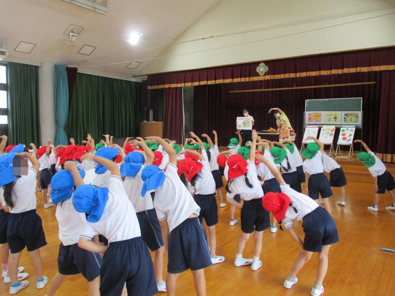 その後、おなか元気の4つのお約束の、「はやねすやすや」「朝ごはんモリモリ」「何でももぐもぐ」「からだのびのび」を教えて頂きました💪