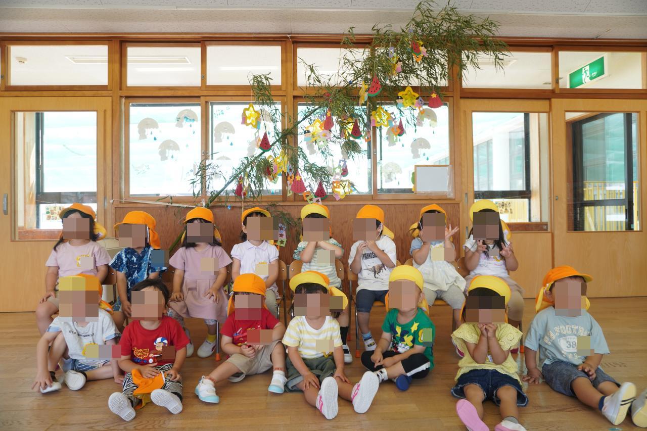 七夕会のあとには、集合写真を撮影したり📷、おほしさまのおやつを食べたりと