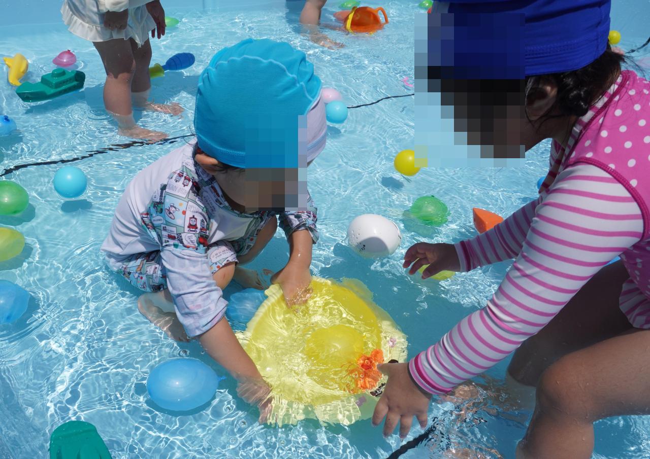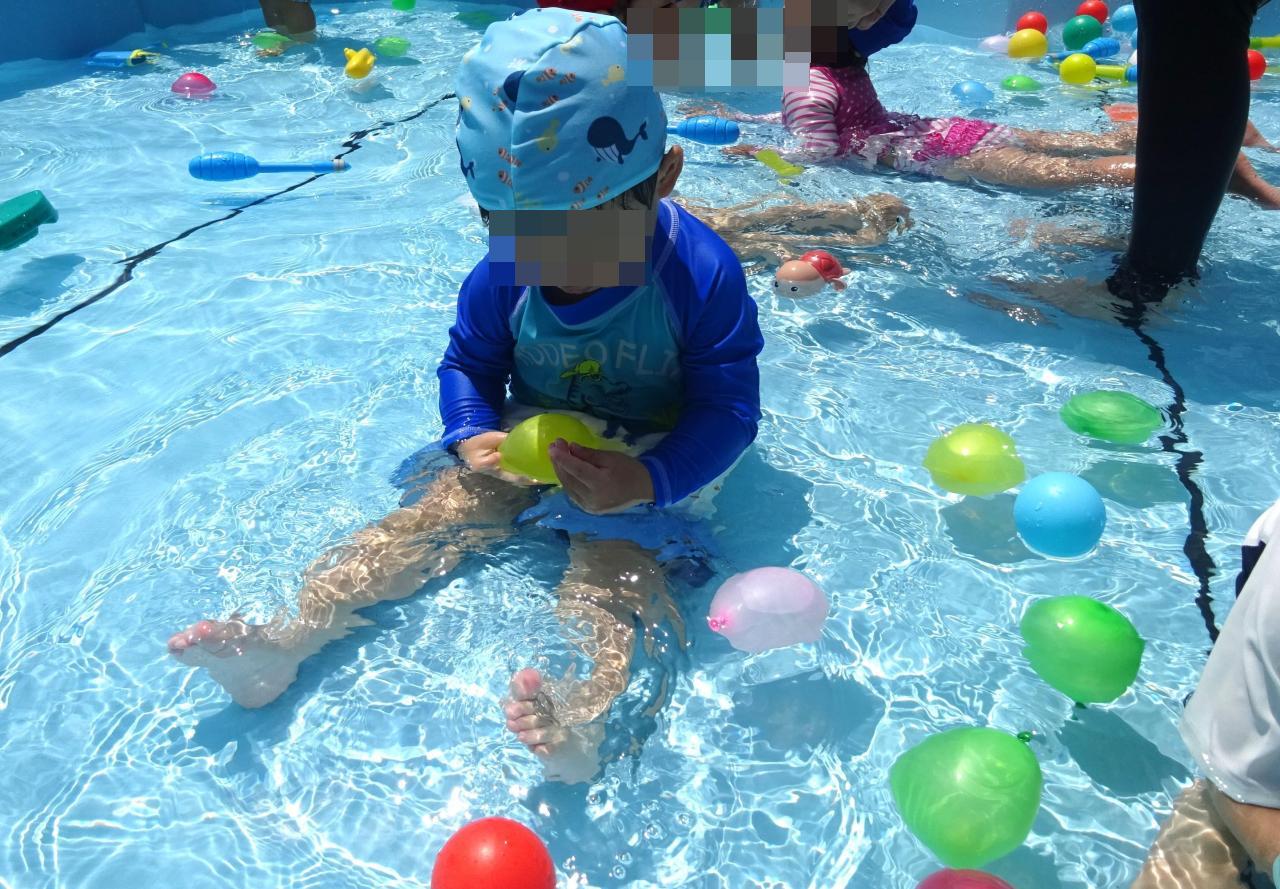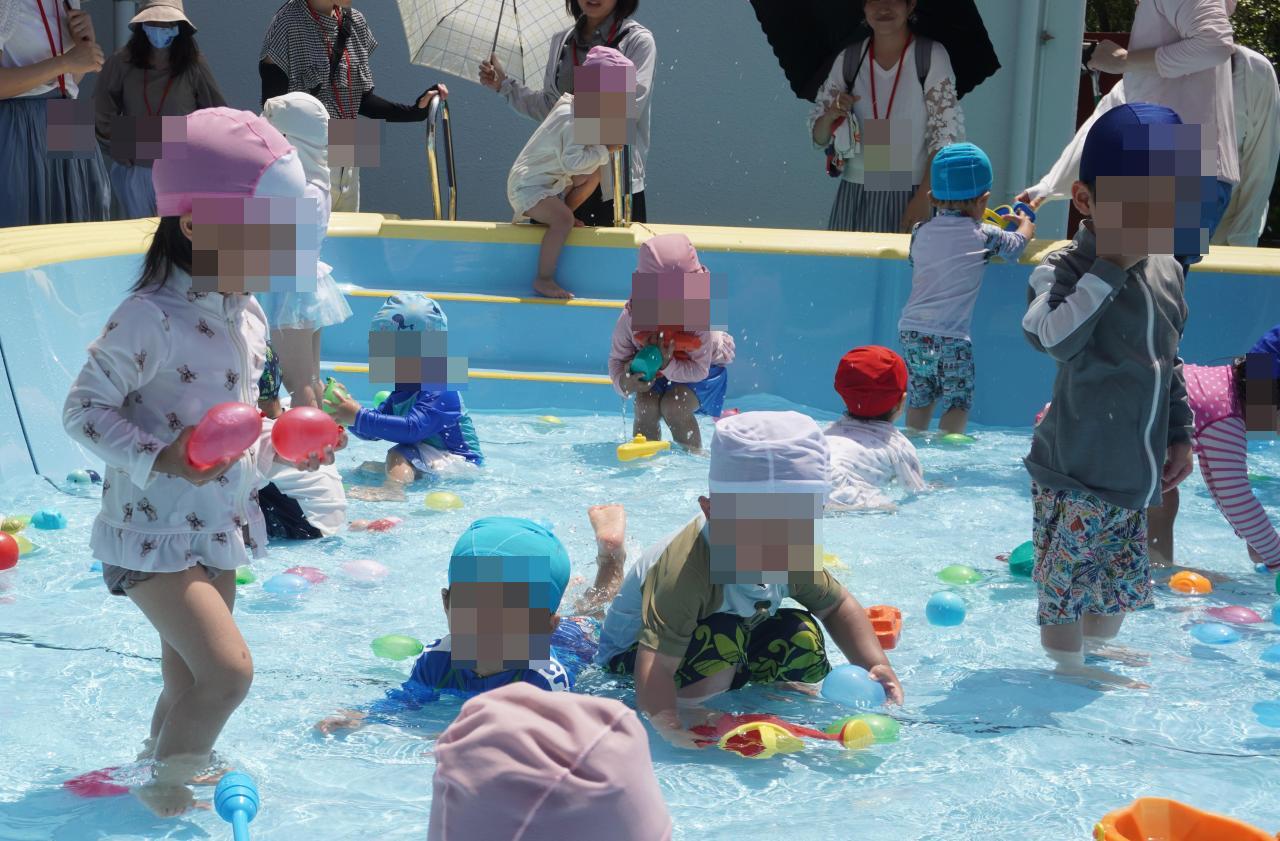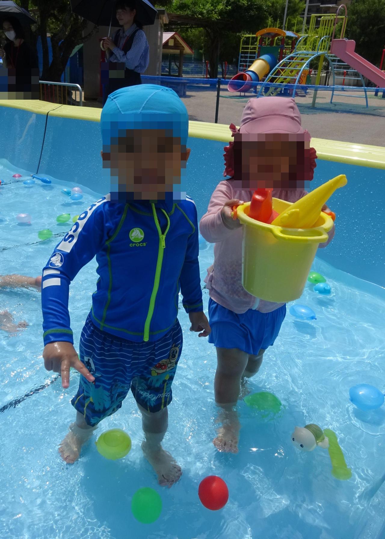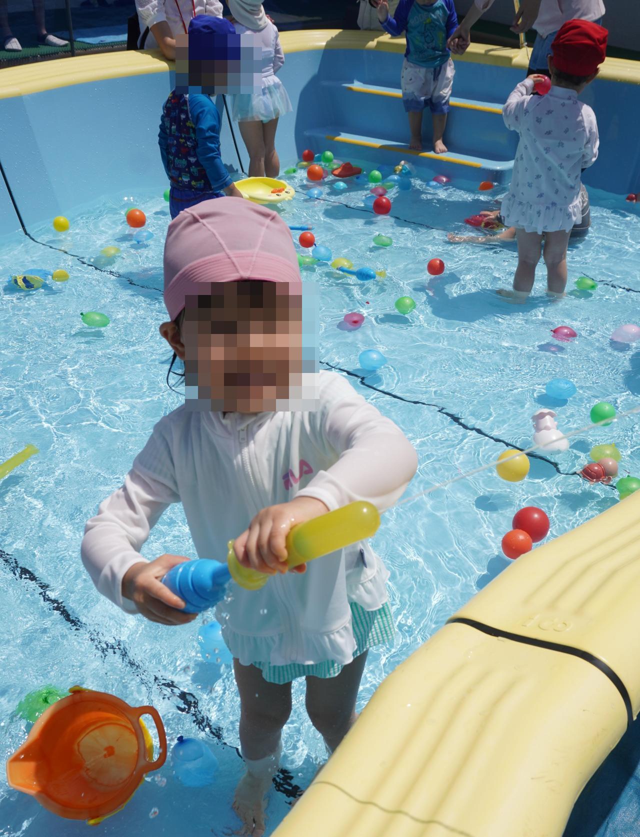 4日(火)とっても良い天気の中、プール遊びを行いました✨🐳