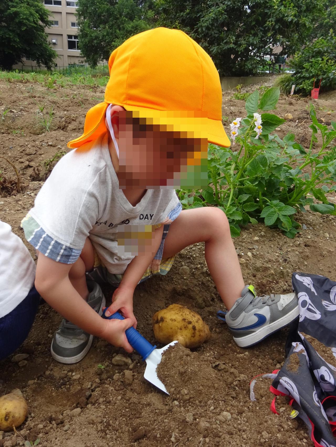 先生たちにもお手伝いをしてもらいながら、スコップや手を使い、上手にじゃがいもを収穫することができました⭐