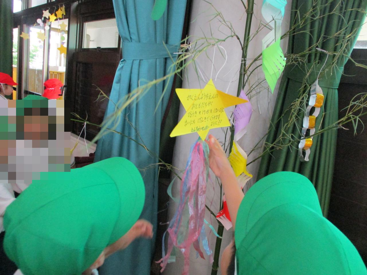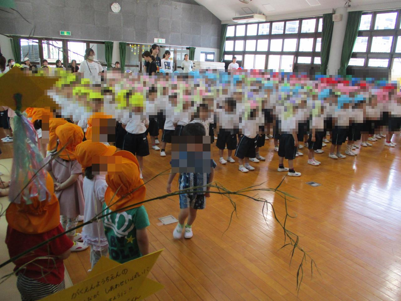 7月7日、全学年とどんぐり組さん、にっこり教室のお友だちで七夕会を行いました🎋