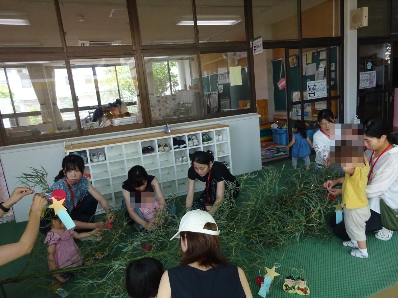 お部屋にも立派な笹に飾られた素敵な七夕製作✨