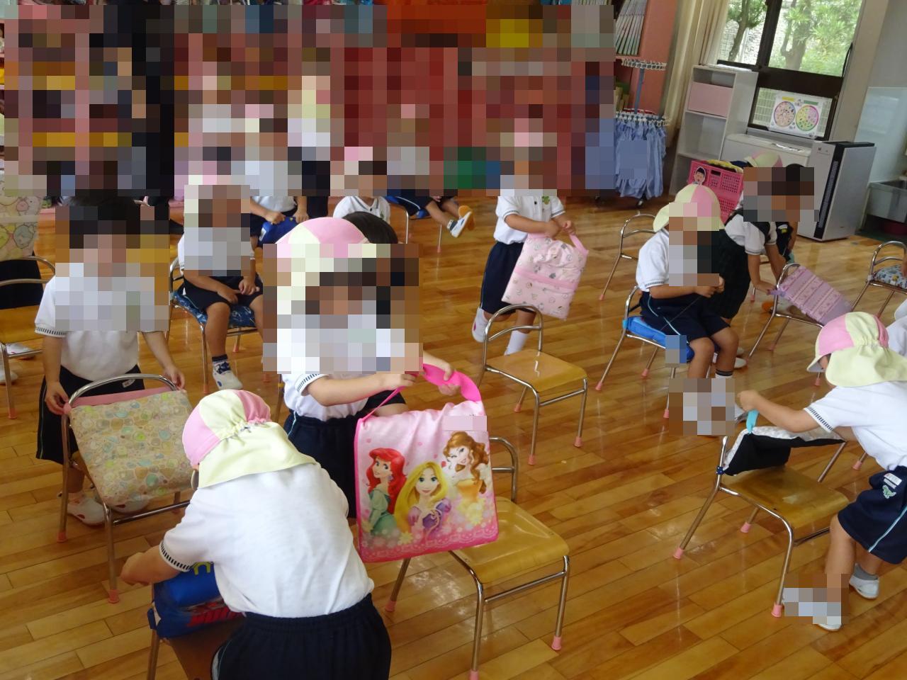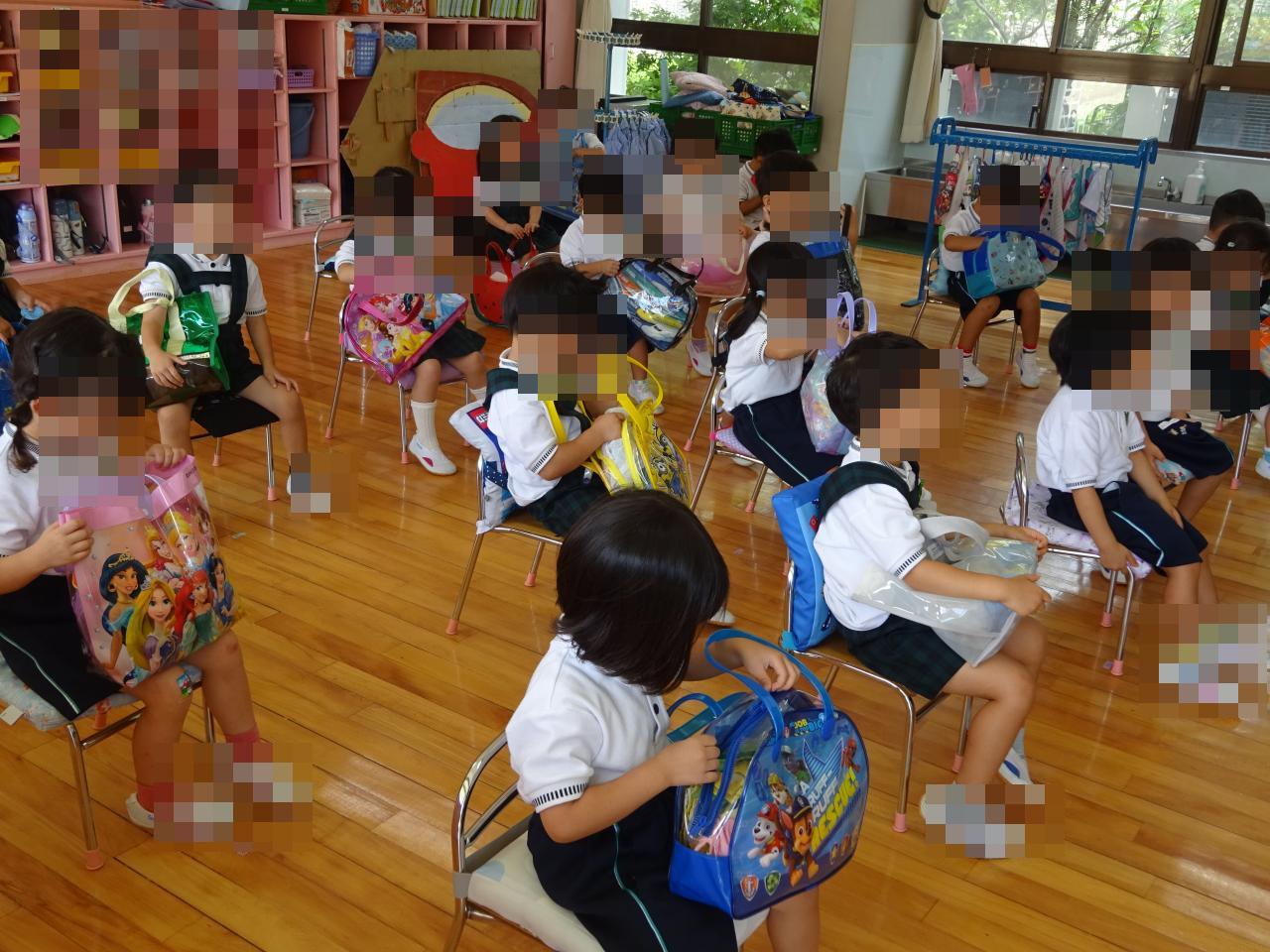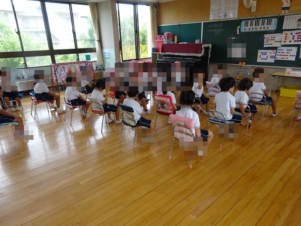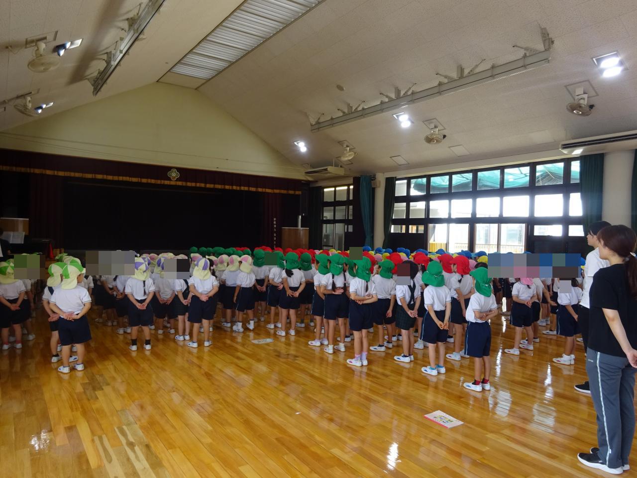 園長先生からは、夏の間に盛り上がったバスケットボールやサッカーの大会があったことから、みんなも運動会で力を合わせてがんばろう!というお話を聞きました。また、9月1日は防災の日となっていて、今日で関東大震災から100年目というお話も聞きました。もしも地震が起こった時のことを考えてこれからも避難訓練で命を守る方法をしっかりと考えていきたいと思います。また、ご家庭でもお話をお願い致します。