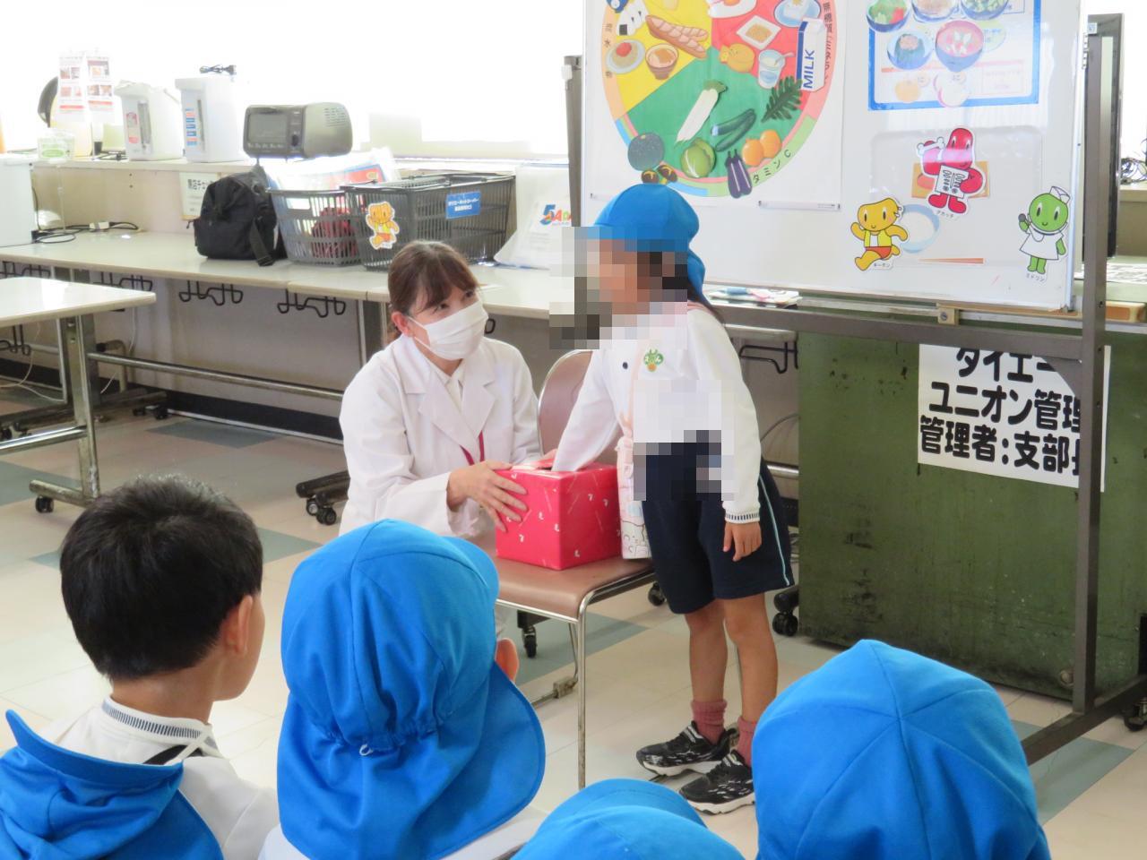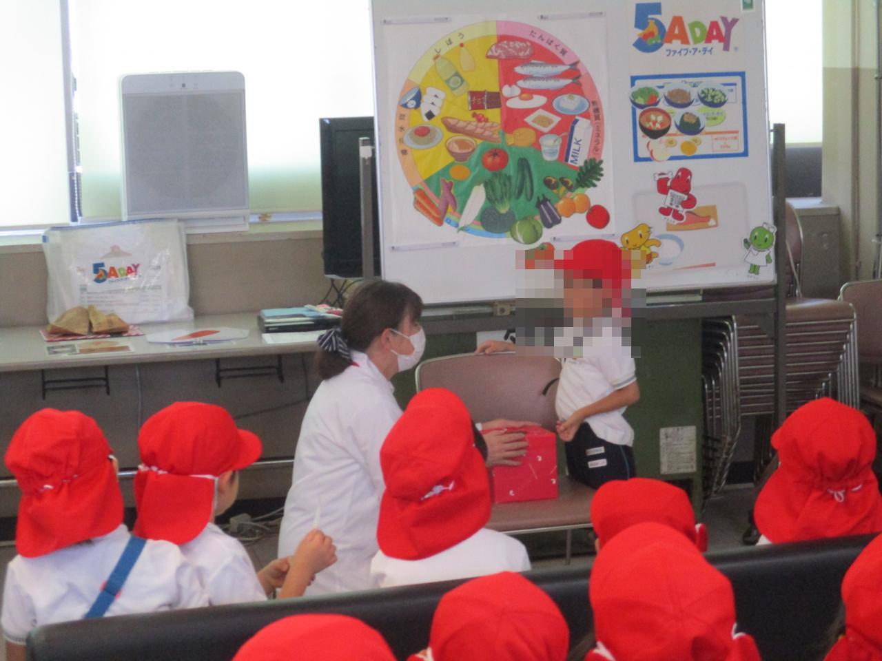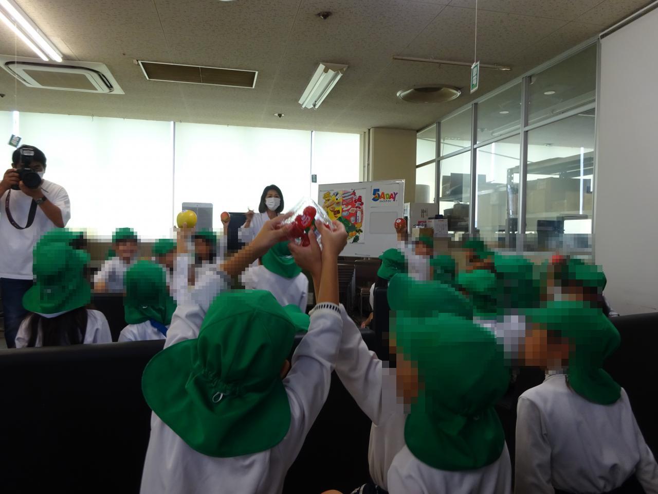 最後には箱の中に入っている野菜や果物をみんなで当てるゲームをし、お友だちがみんなにヒントを伝えてくれて当てることができました💯