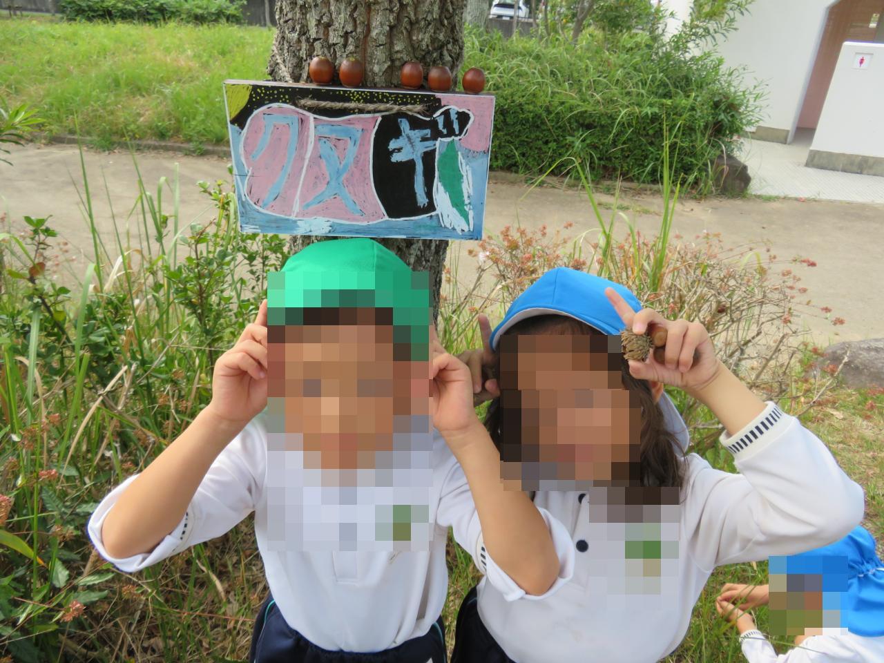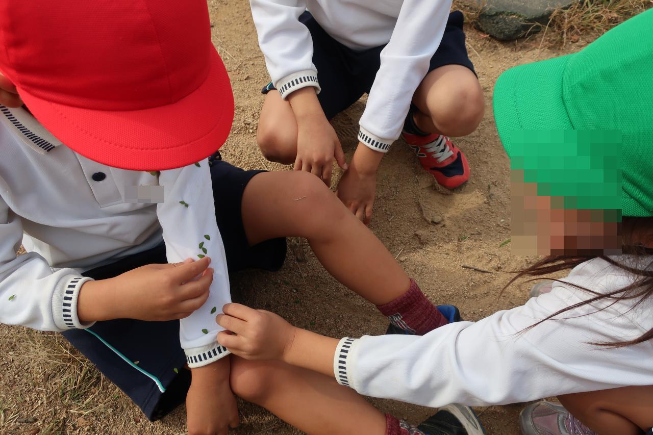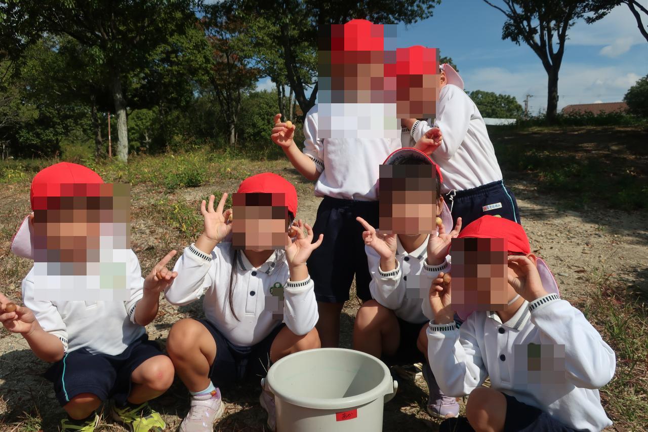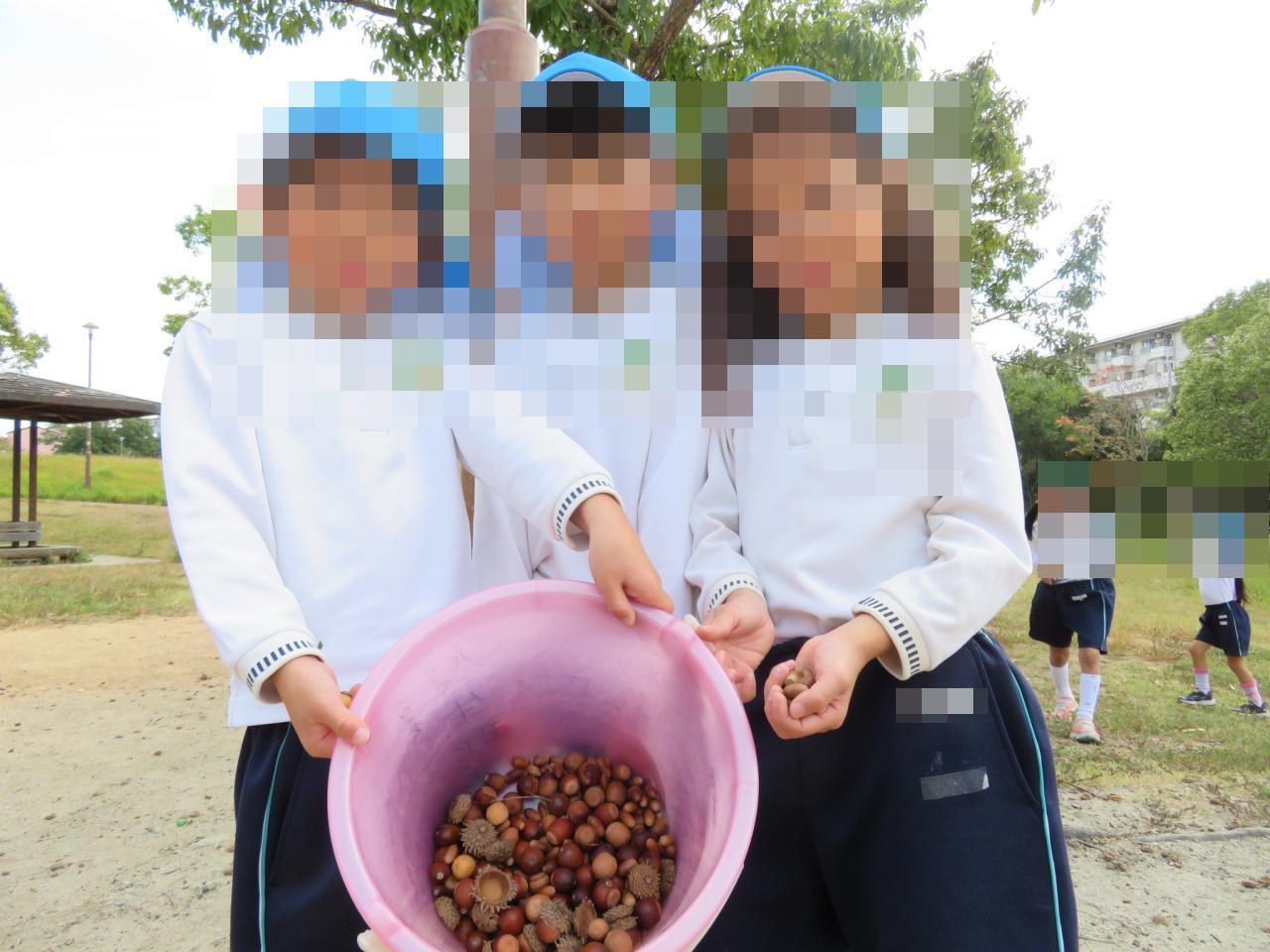 「めっちゃ小さい赤ちゃんどんぐり見つけた~!」「帽子ついてるのもあった!」と大小の違いや種類にも注目しながらどんぐりを集めていました😄