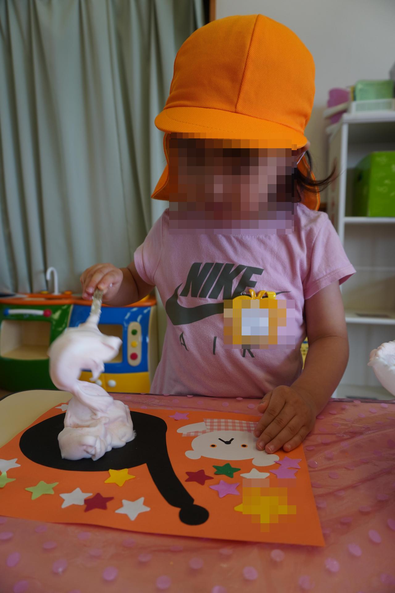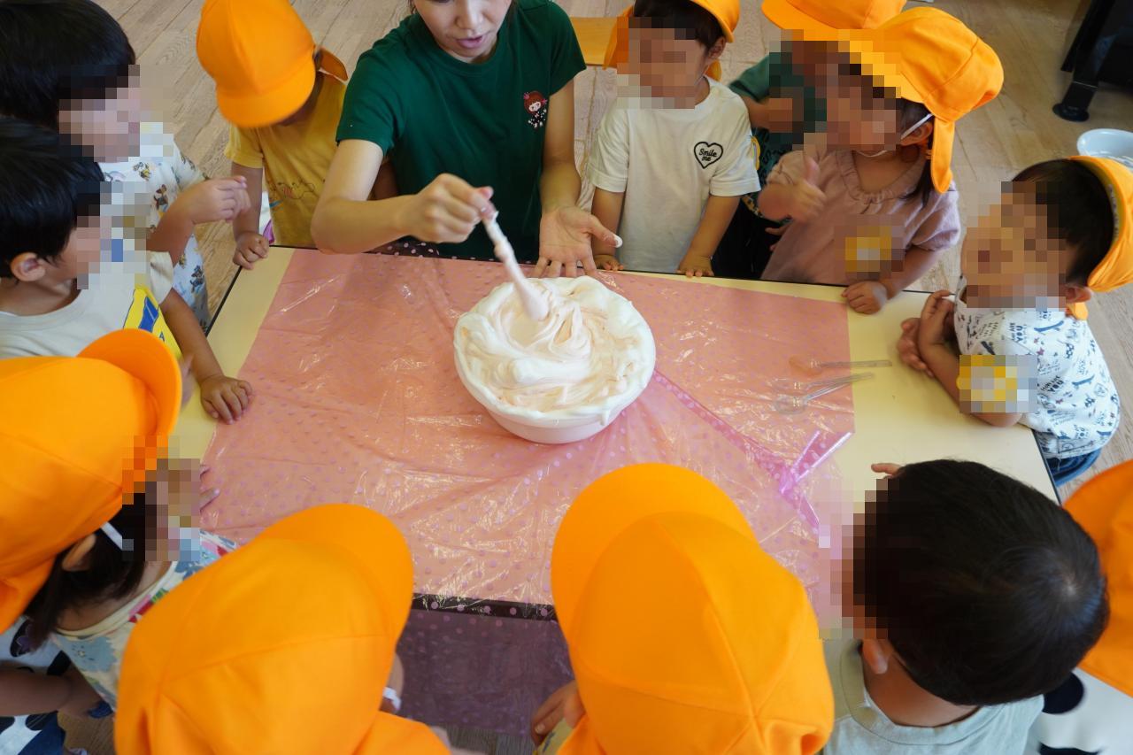 製作活動では、子どもたちにも親しみのある「しろくまちゃんのホットケーキ」にちなんでホットケーキ製作😆❗
