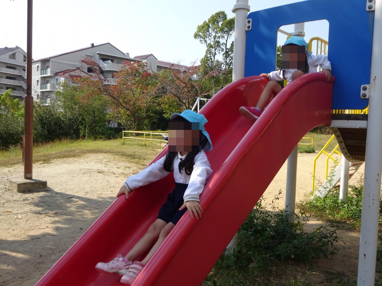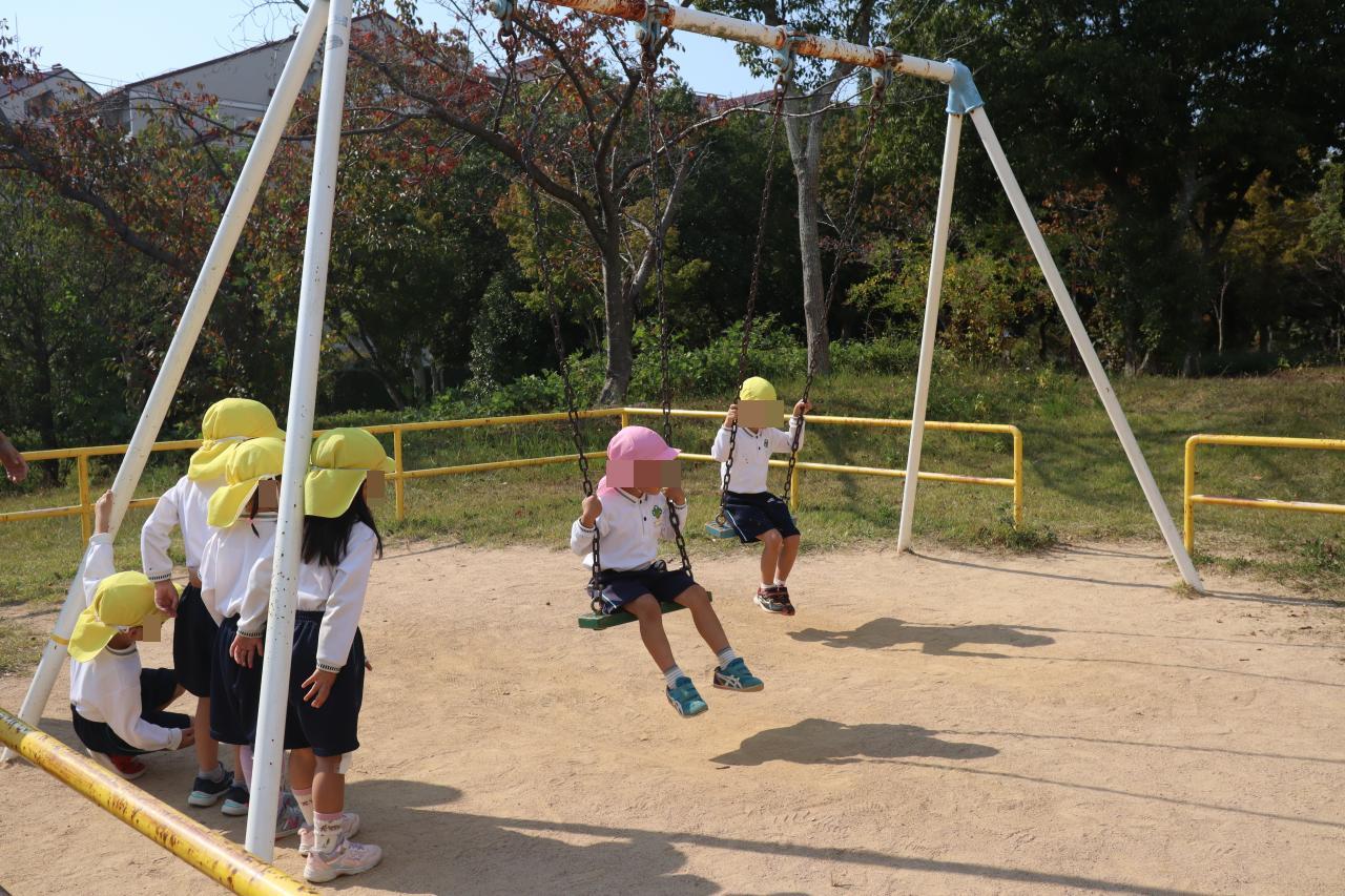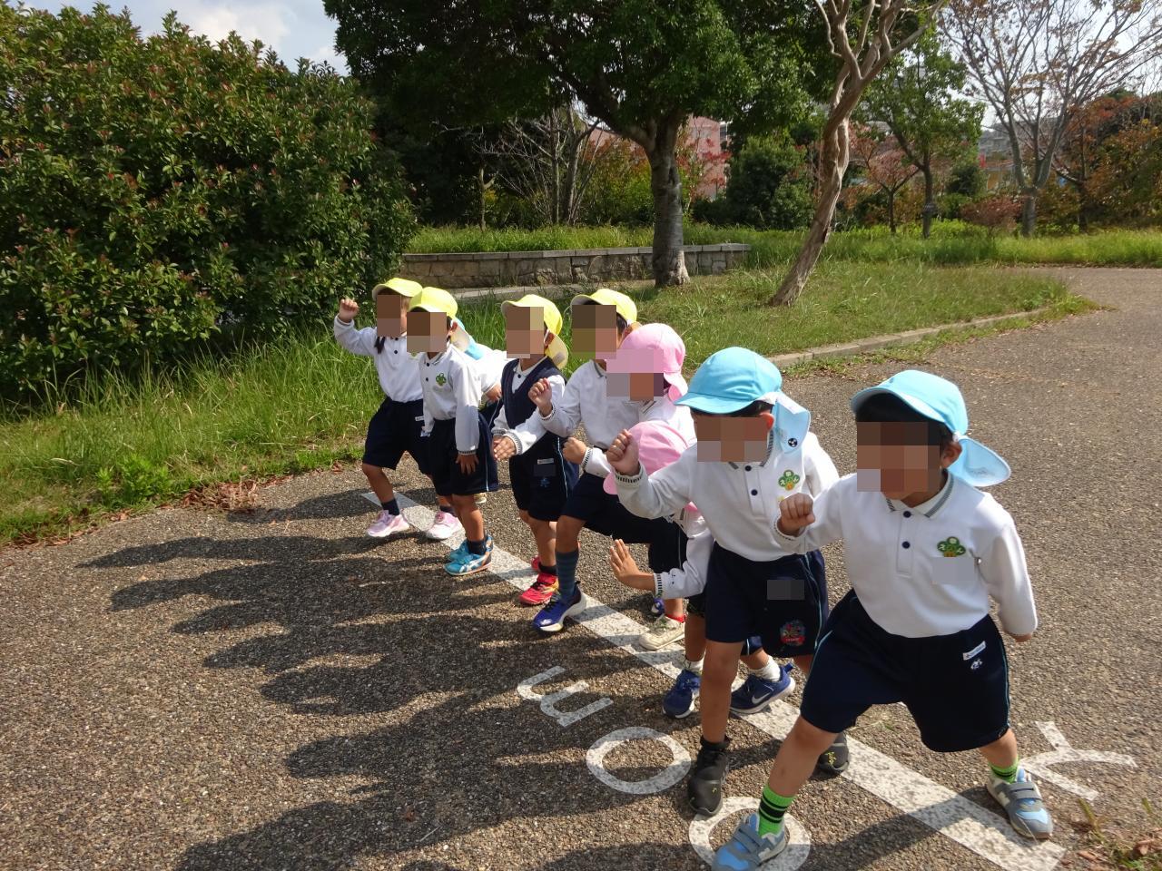 秋晴れの中、マラソン大会の練習で年中児で西町公園に行きました😄