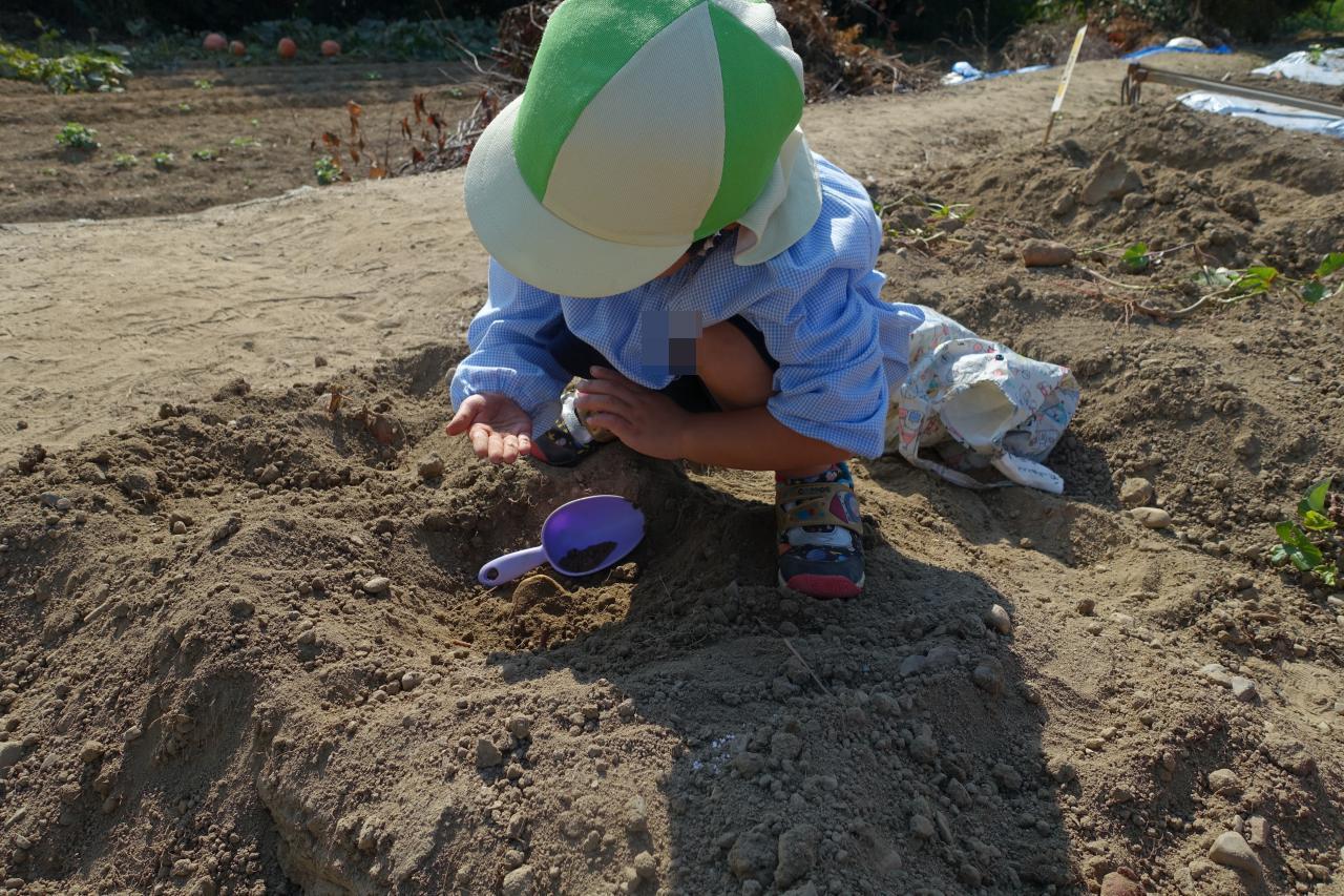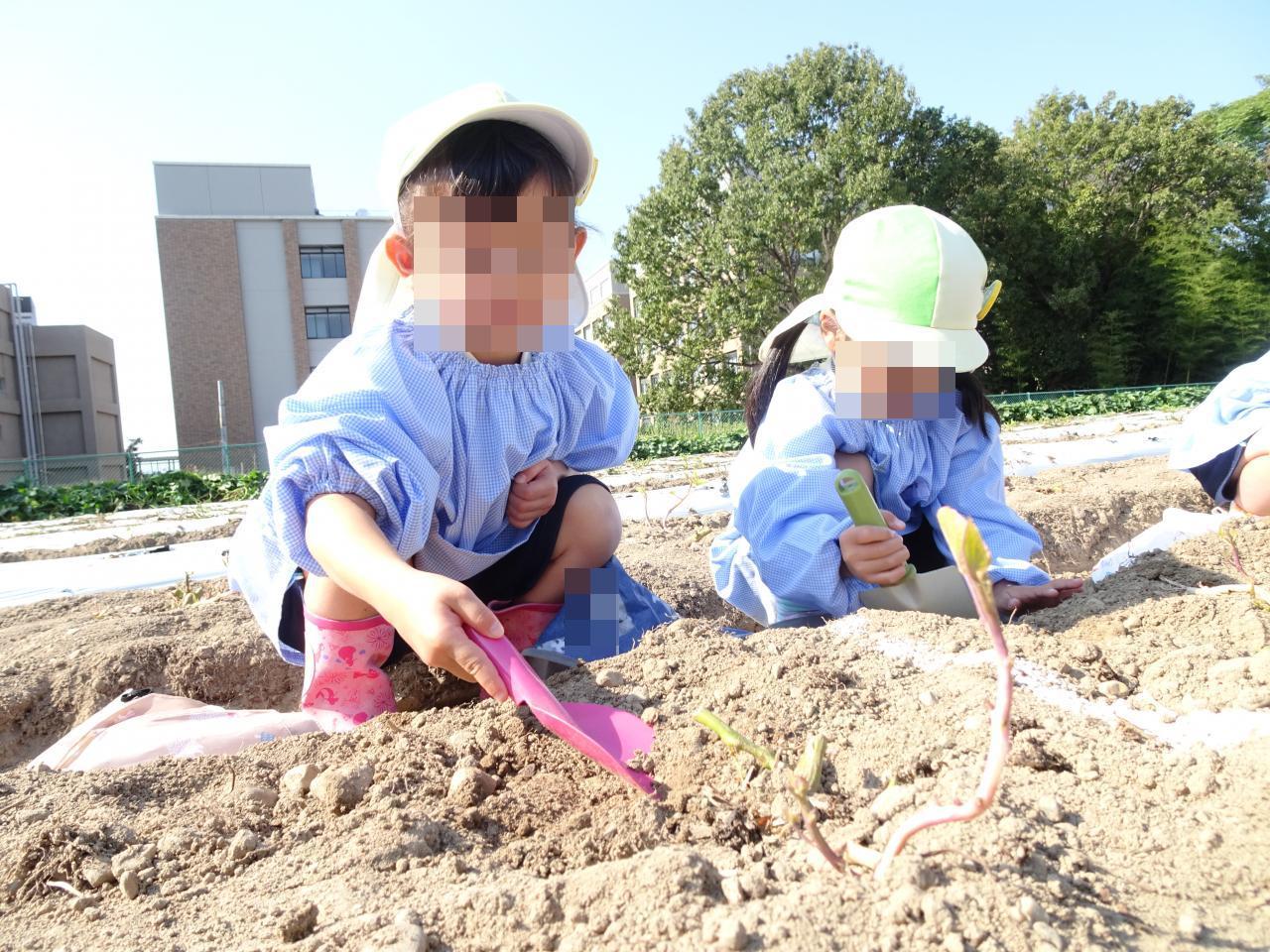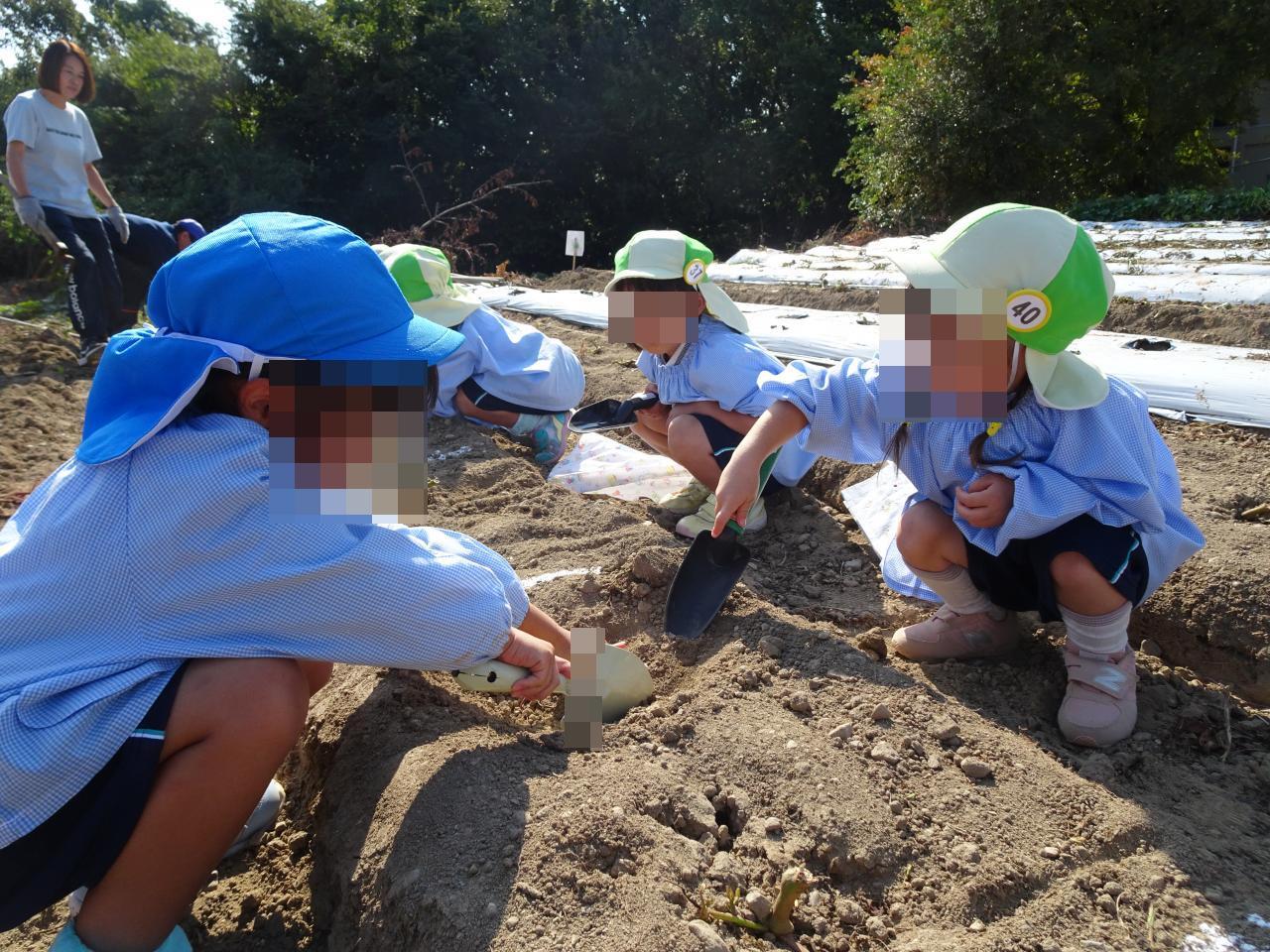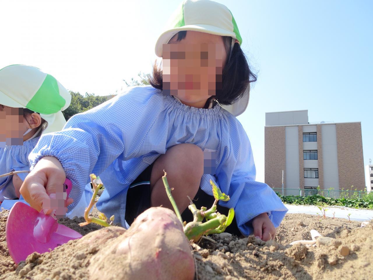 自分で頑張って掘り、お芋が土から見えると「出てきたー!」と嬉しそうに教えてくれた子どもたち😆
