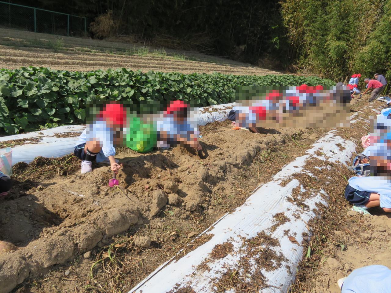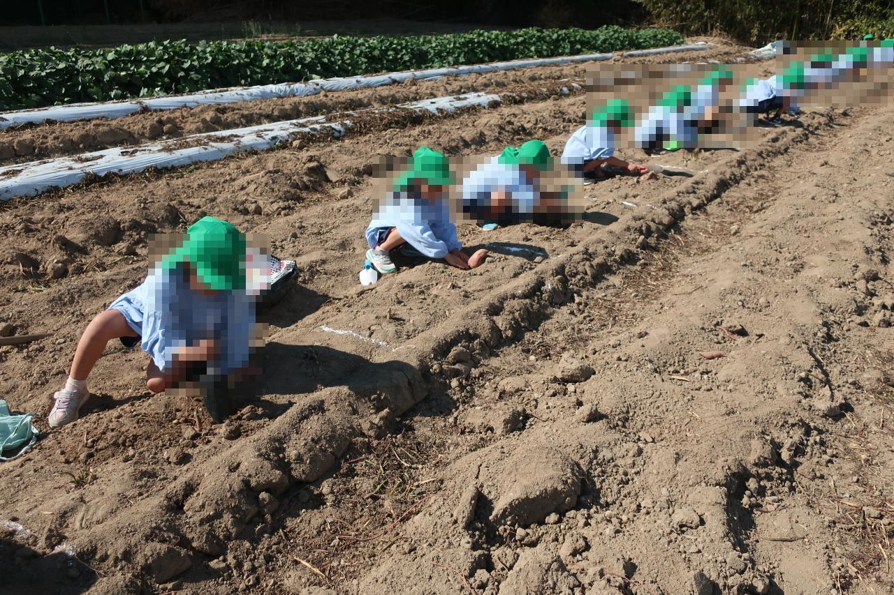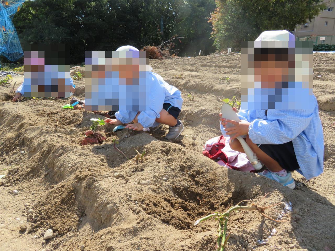 畑に着くと、「さつまいもどこかな~?」「いっぱい掘るぞー!!」とわくわくした様子の子どもたち🌟
