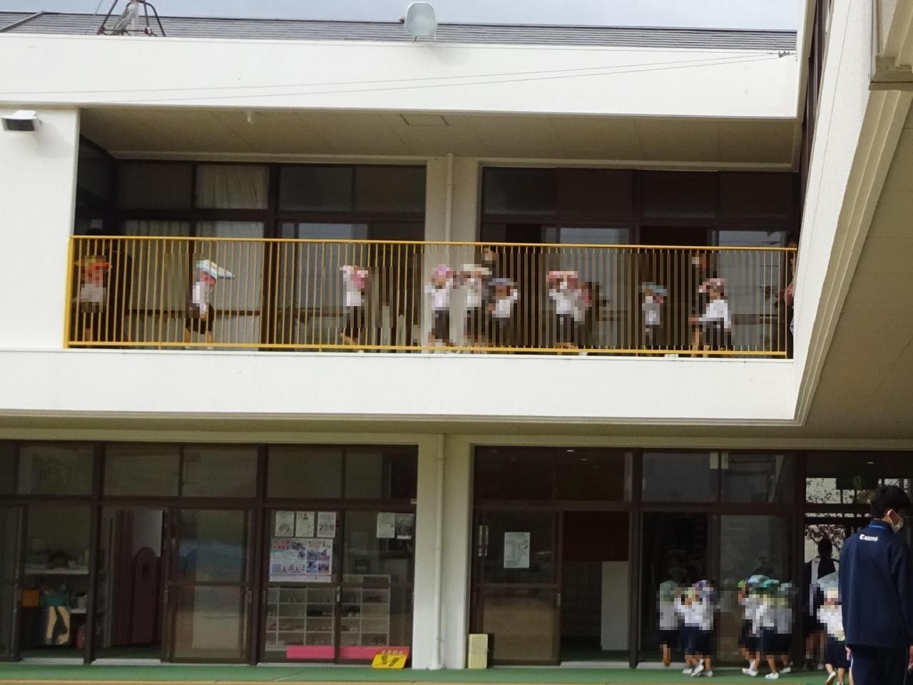 地震発生による津波、台風や大雨による川の氾濫等、水による災害が起こった際には「高い場所に避難する」ということを子どもたちと確認しました💦