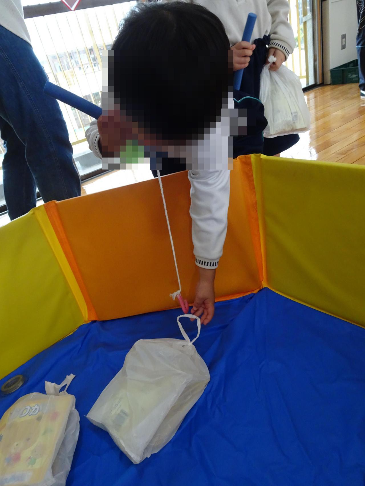 大ホールでは、輪投げやおやつ釣りを楽しみ、「とれた~✨」と、とても嬉しそうに見せてくれました。