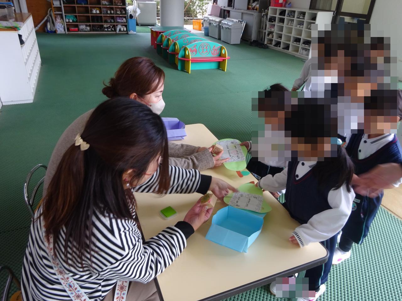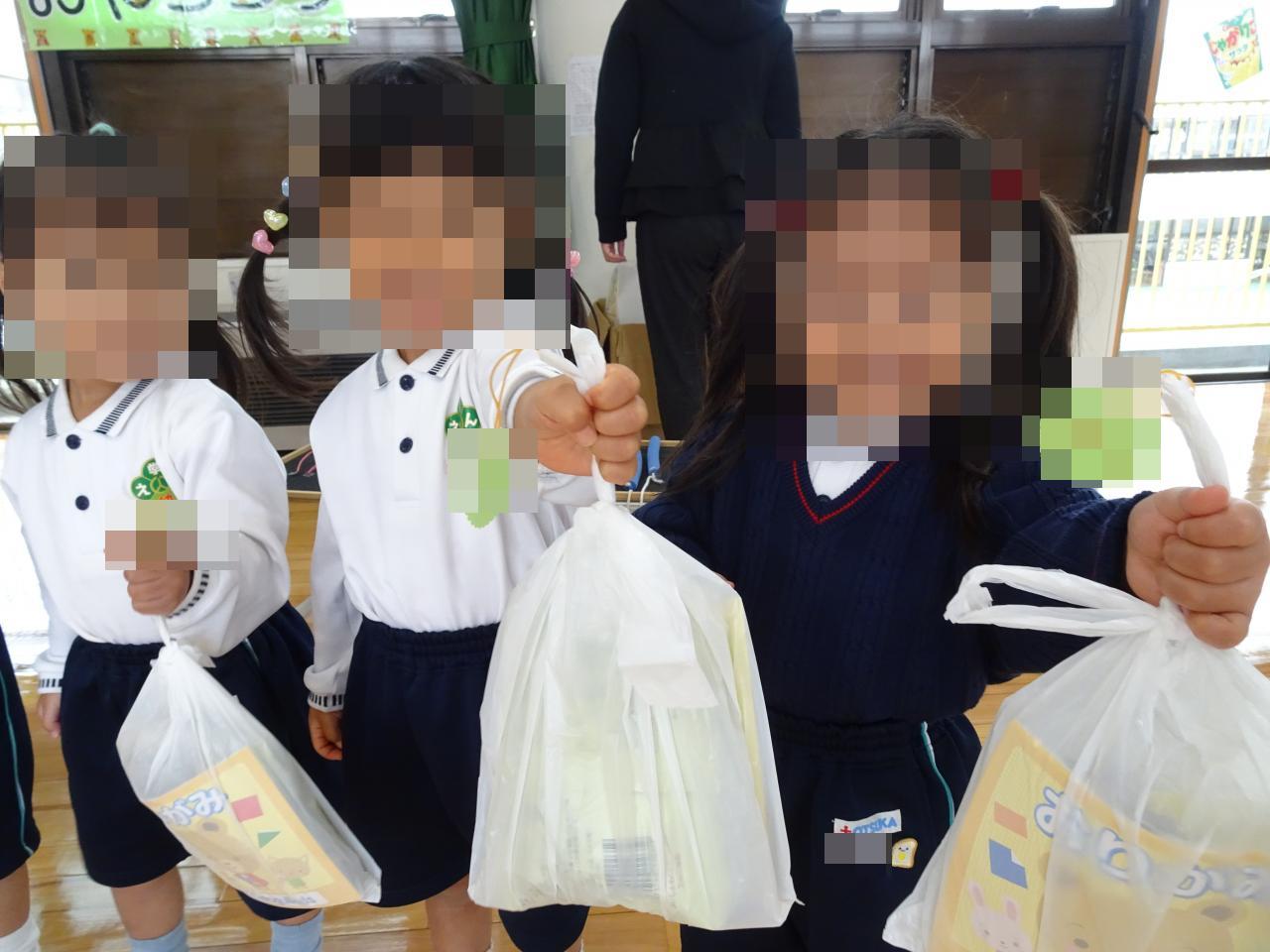 本日、欠席していたお友だちにも、おやつとカードがありますので、登園した日にお渡ししたいと思います。