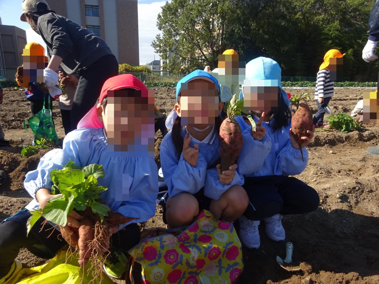 畑に到着後、手やスコップを使って一生懸命に掘り進め、たくさんのおいもを見つけることができました🍠✨