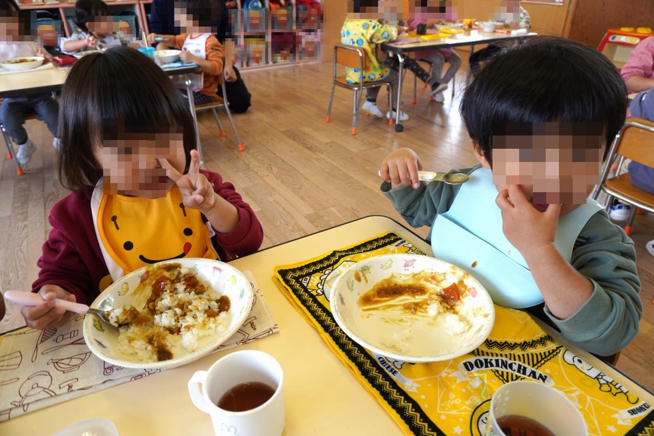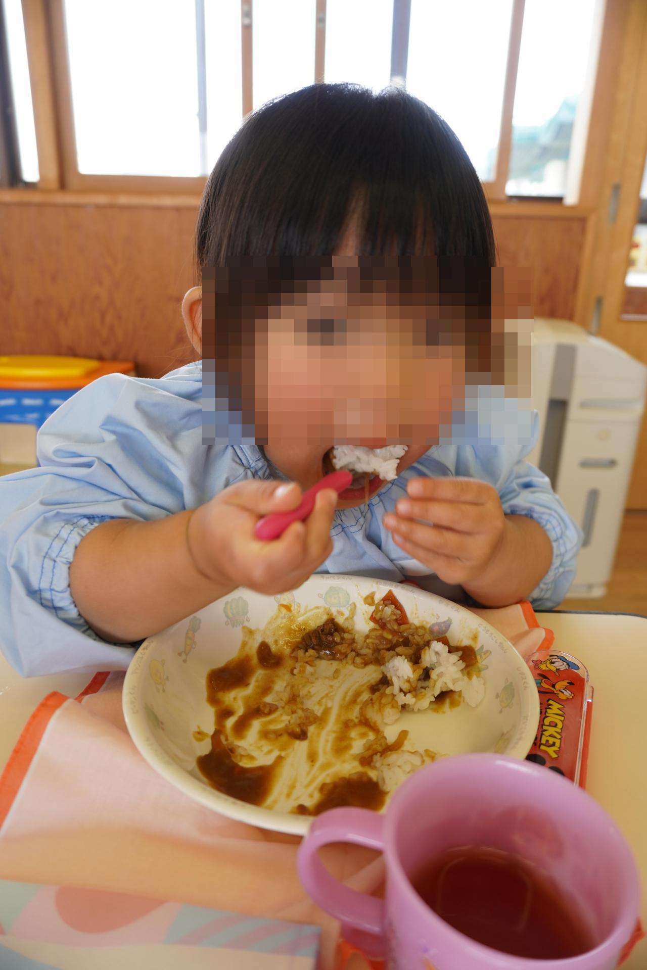 普段はカレーをあまり食べない子も、なかなか自分では食事ができない子も、白ごはんが苦手な子も、、事前にお聞きしていた話がうそのように全員完食✨し、スプーンを使って自分で上手に食べ進める姿に驚きと嬉しさの連続でした🥰