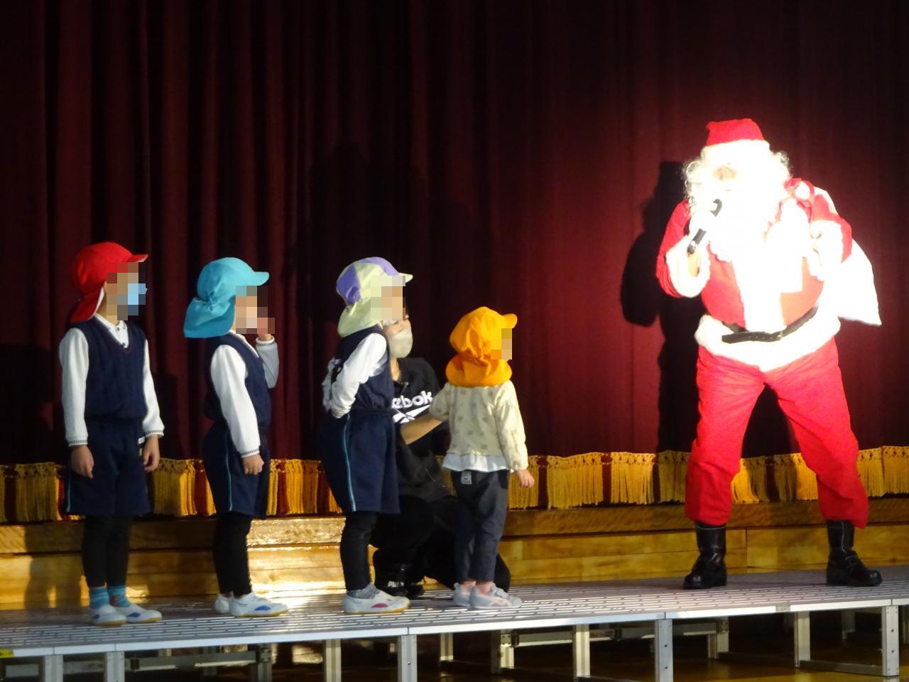 待ちに待ったサンタクロースさんの登場に、子どもたちの嬉しそうな歓声があがりました🥰