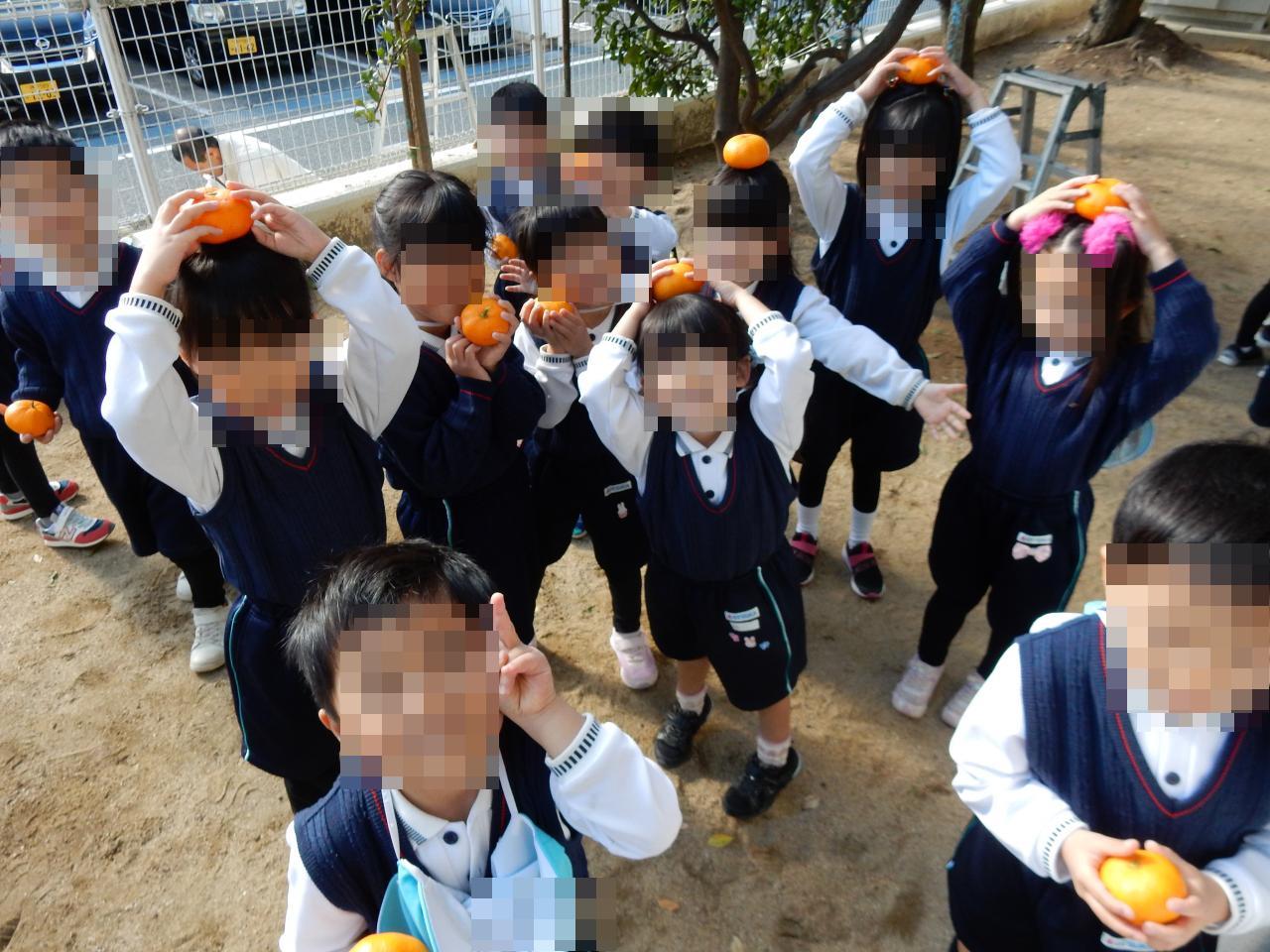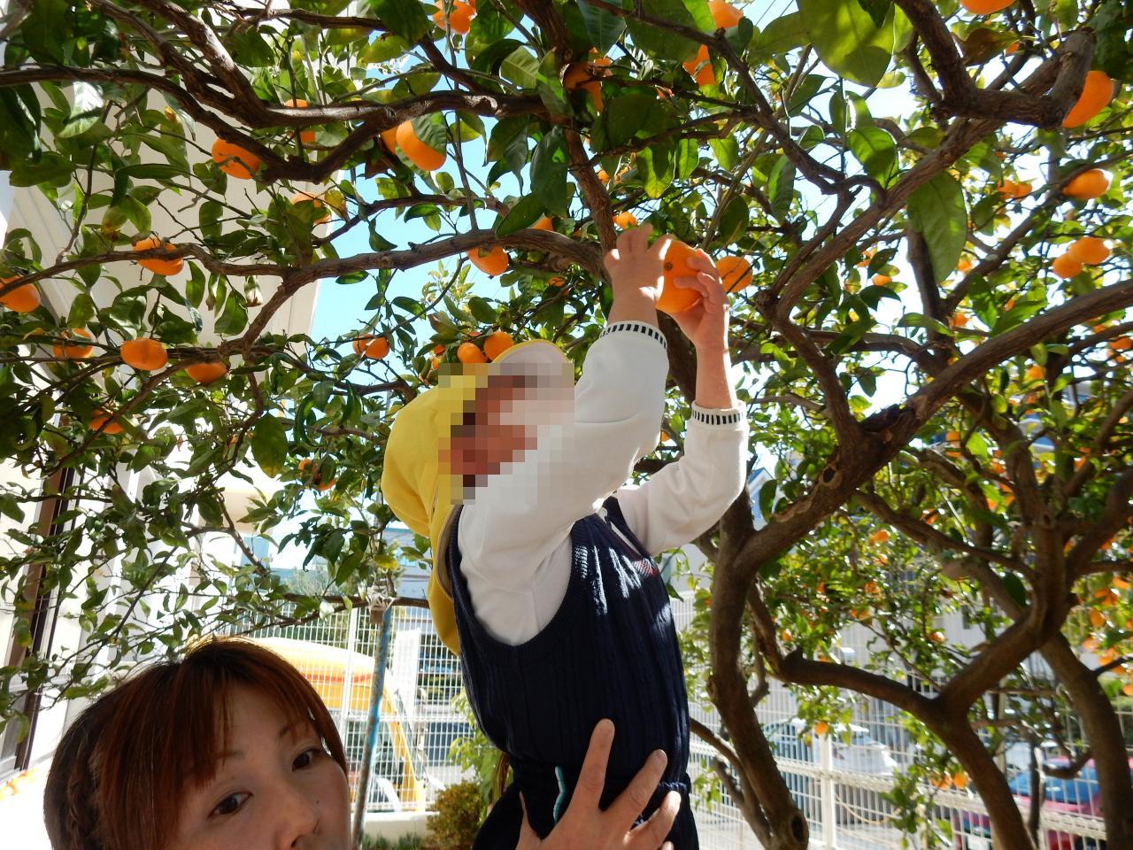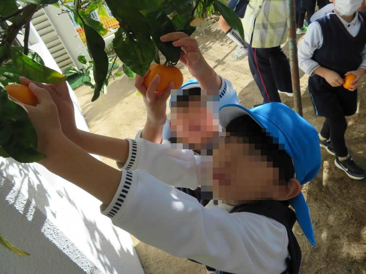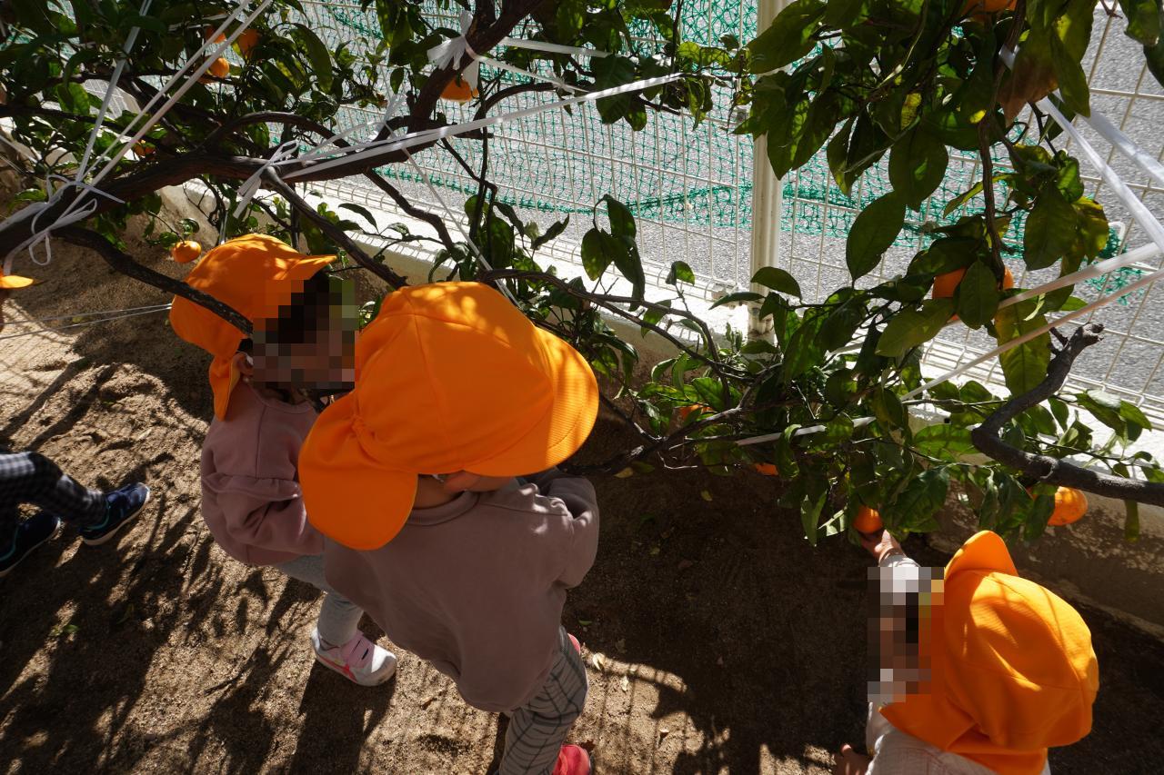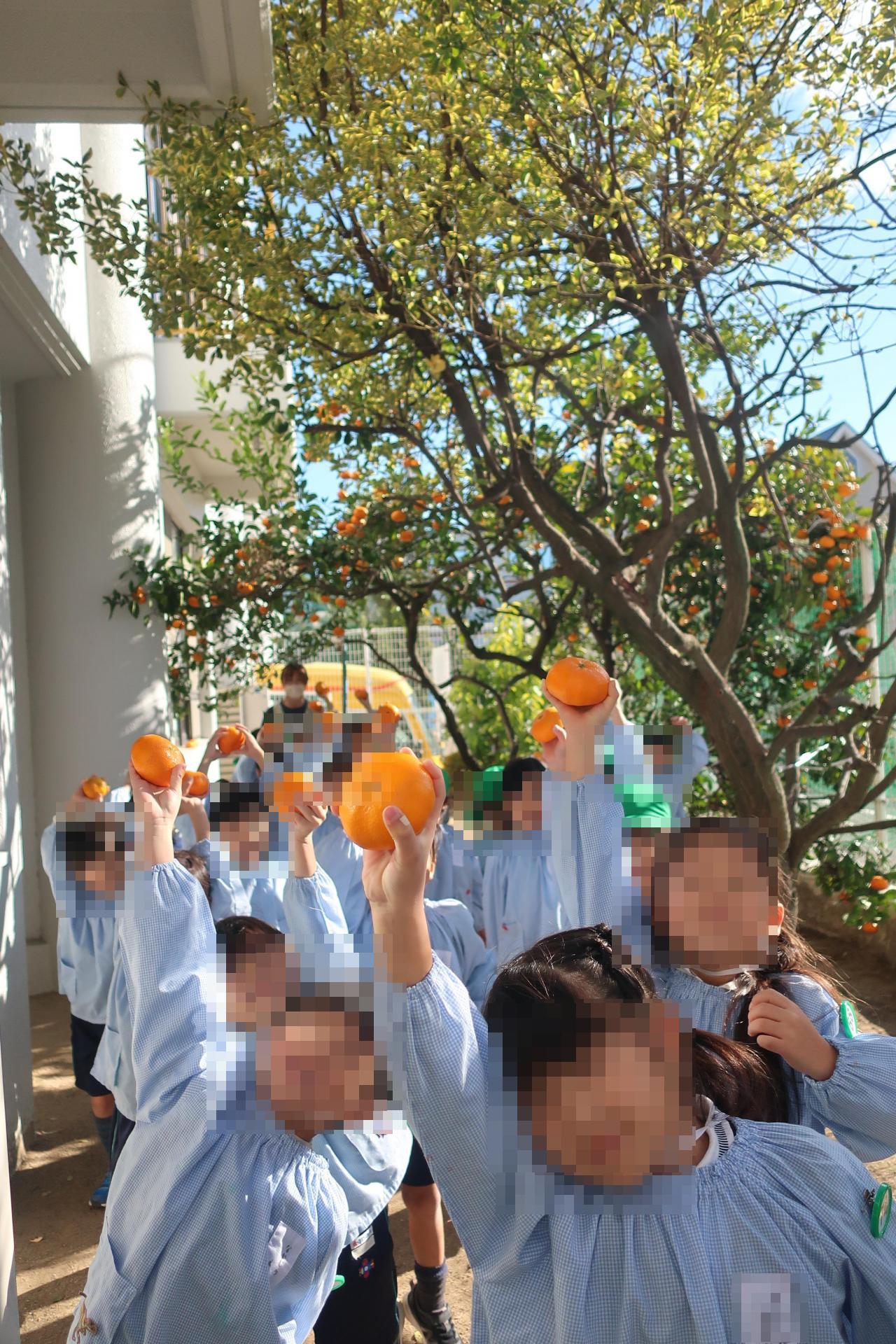 また、幼稚園の裏庭でみかん狩りも行いました🍊