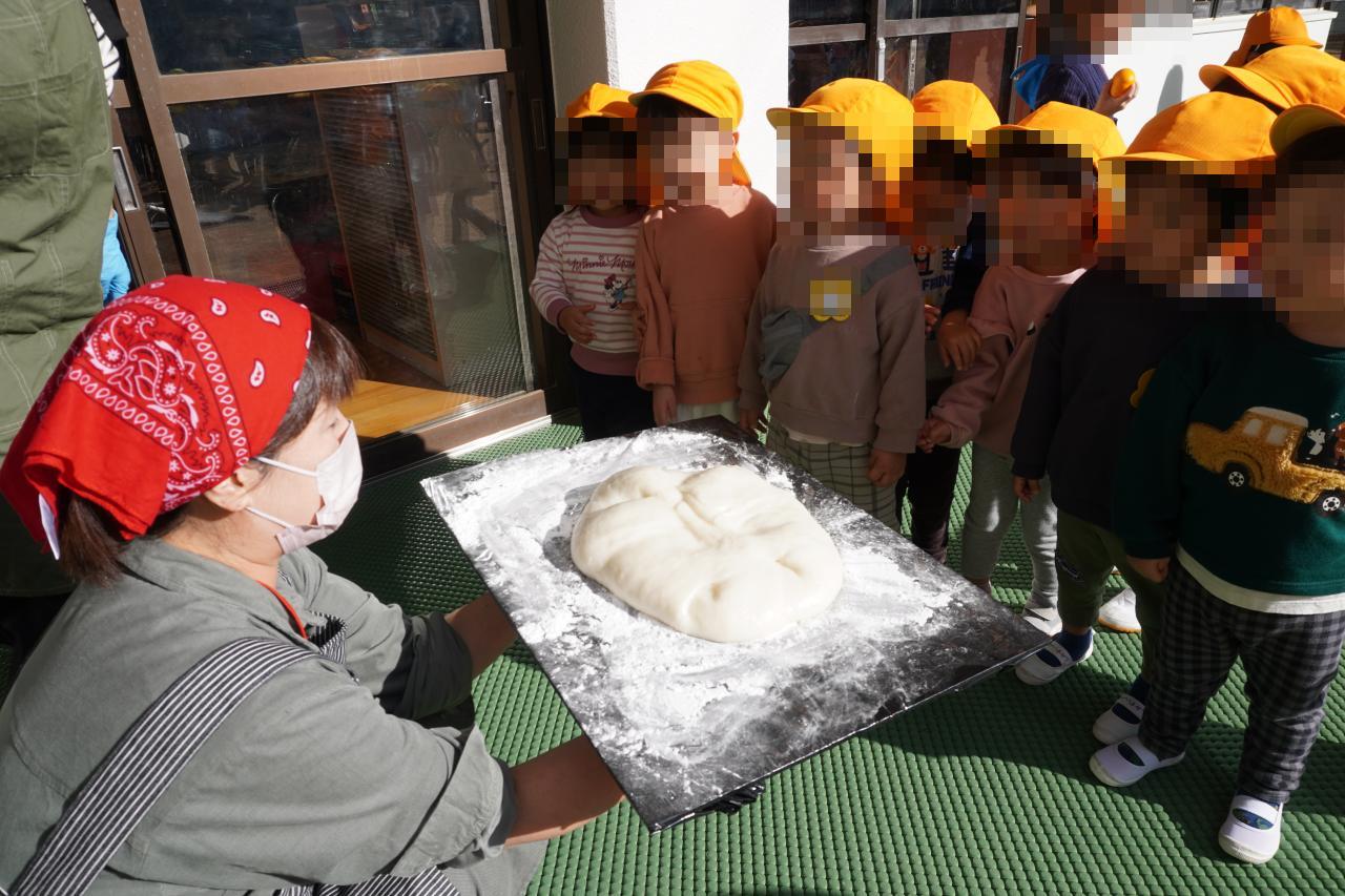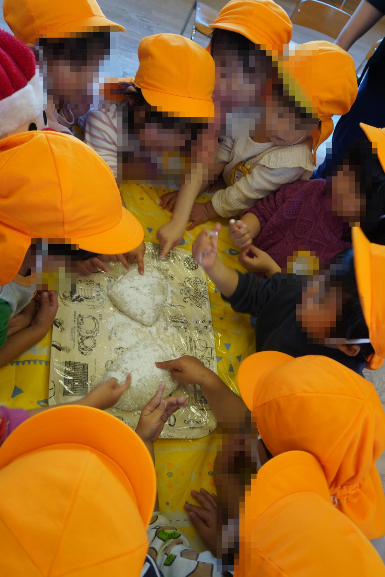 おもちつきでは、お兄さんお姉さんがついている様子を見学し、できたてのおもちで鏡餅を作りました🎍