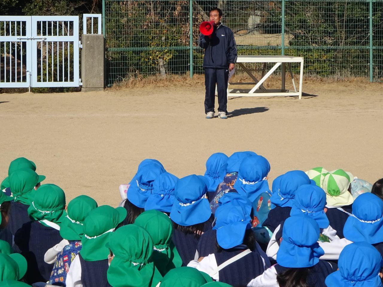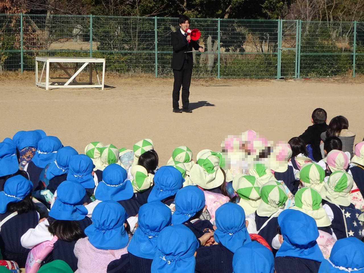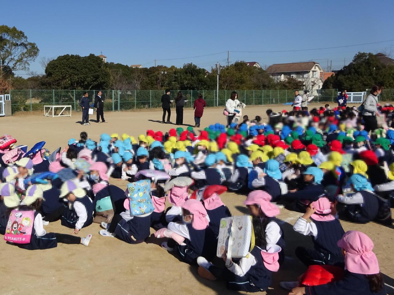 「地震の揺れが落ち着きました」という言葉を合図に、園庭に避難しました🚶