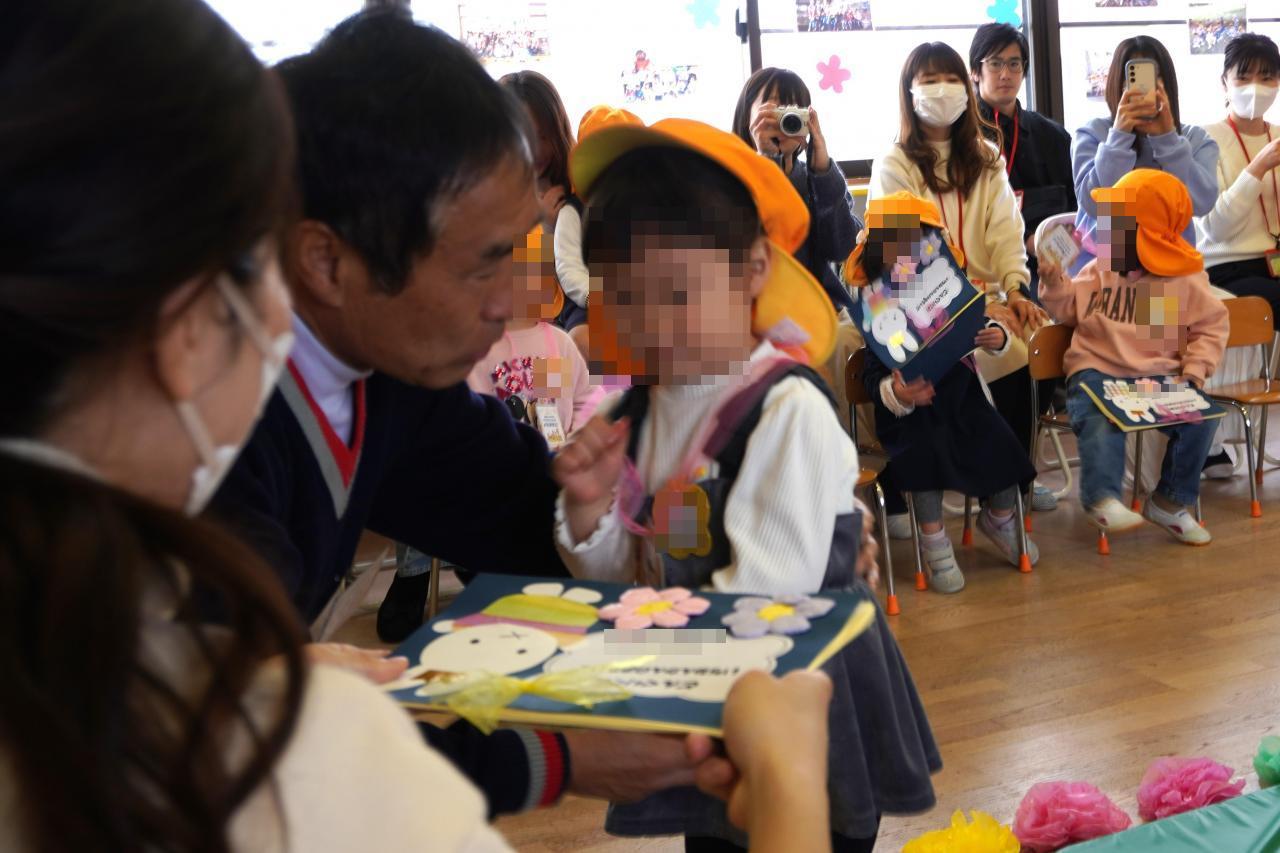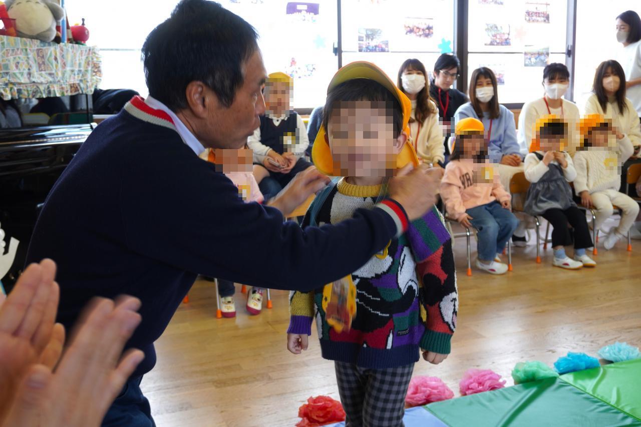 園長先生からお褒めの言葉を頂き、修了メダルと1年間の思い出のアルバム冊子を一人ずつ上手に受け取ることができました😆💕