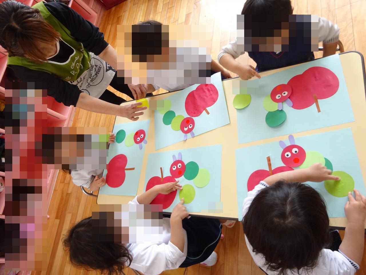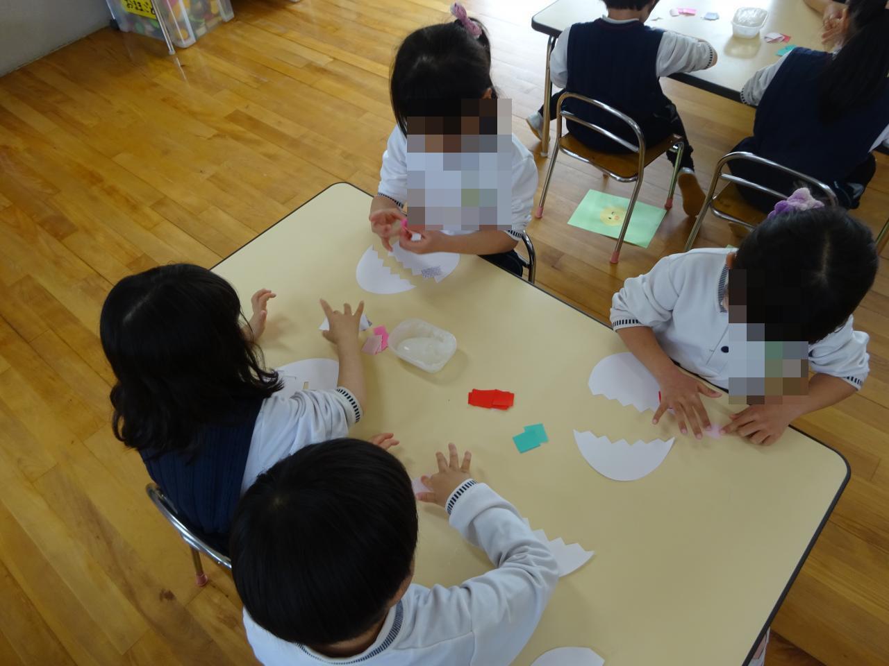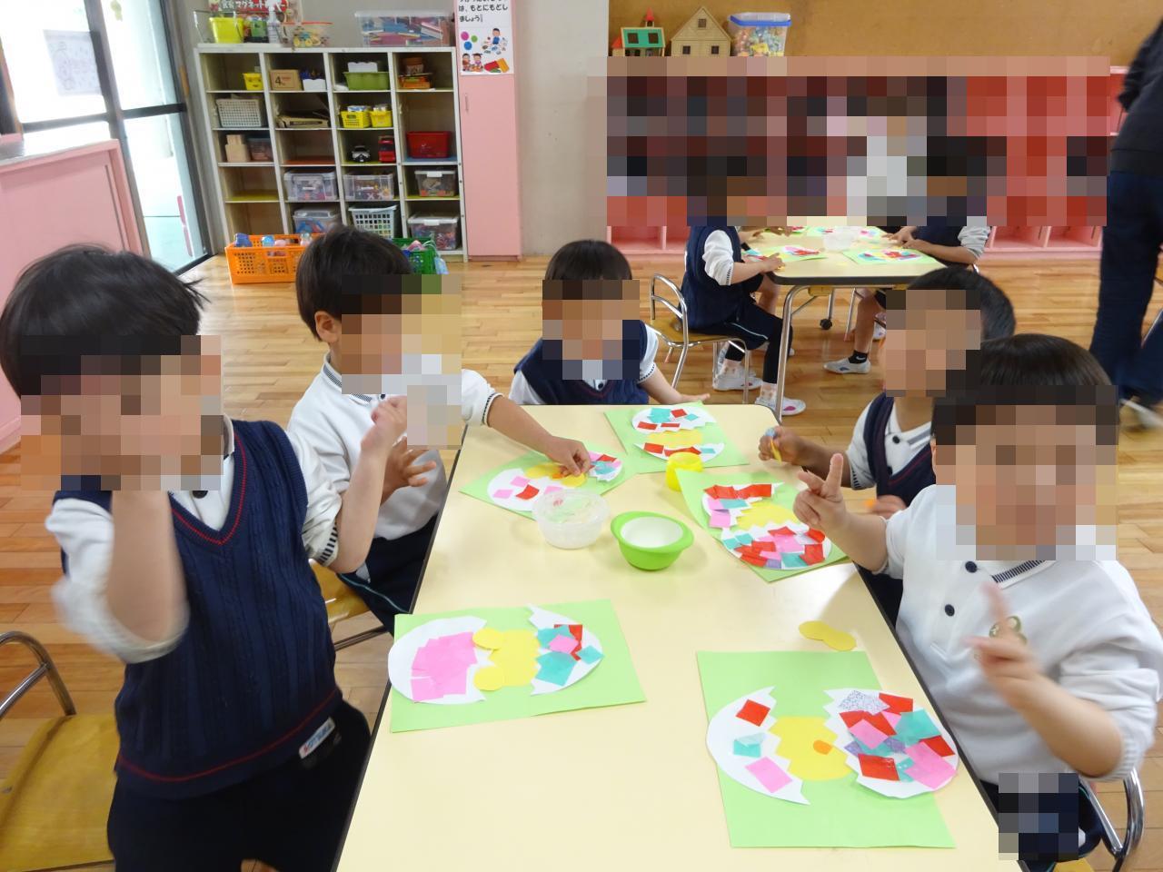 子どもたちは、先生から園での約束事を聞きながら、のりを使って製作をしたり、みんなで楽しく歌をうたったり、園生活の流れを覚え始めています😀