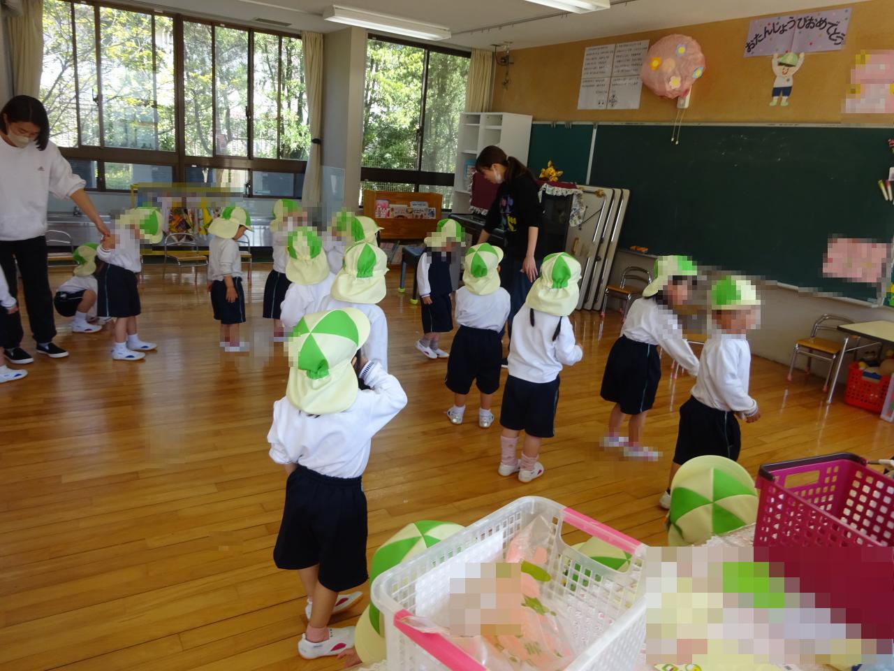 年中さん・年長さんは、早速お当番表を作ったり、身体測定をしたりと忙しく、しっかりと話を聞いて活動を行いました👏
