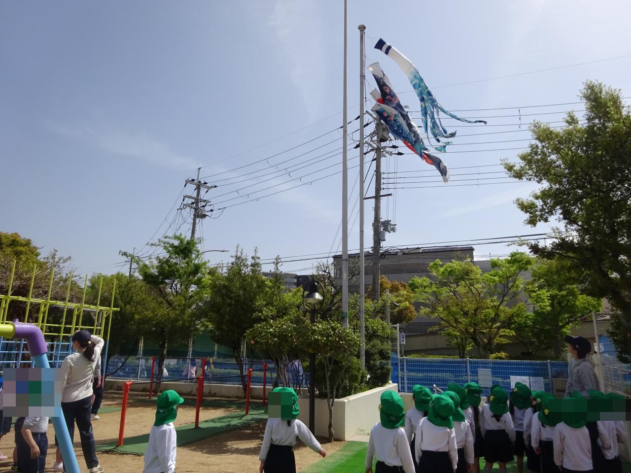 今日からしばらく、晴れた日には幼稚園にこいのぼりがあがります!