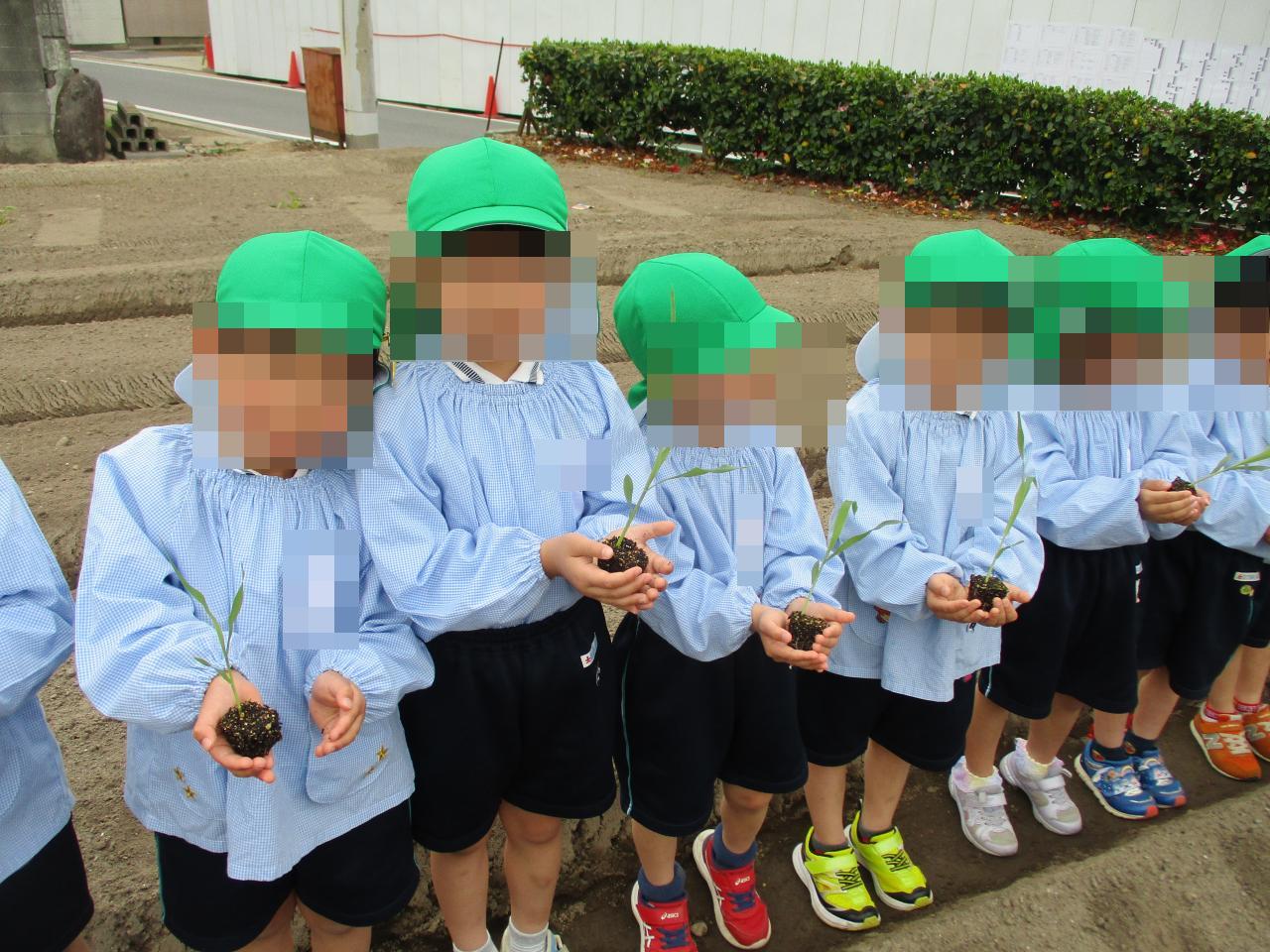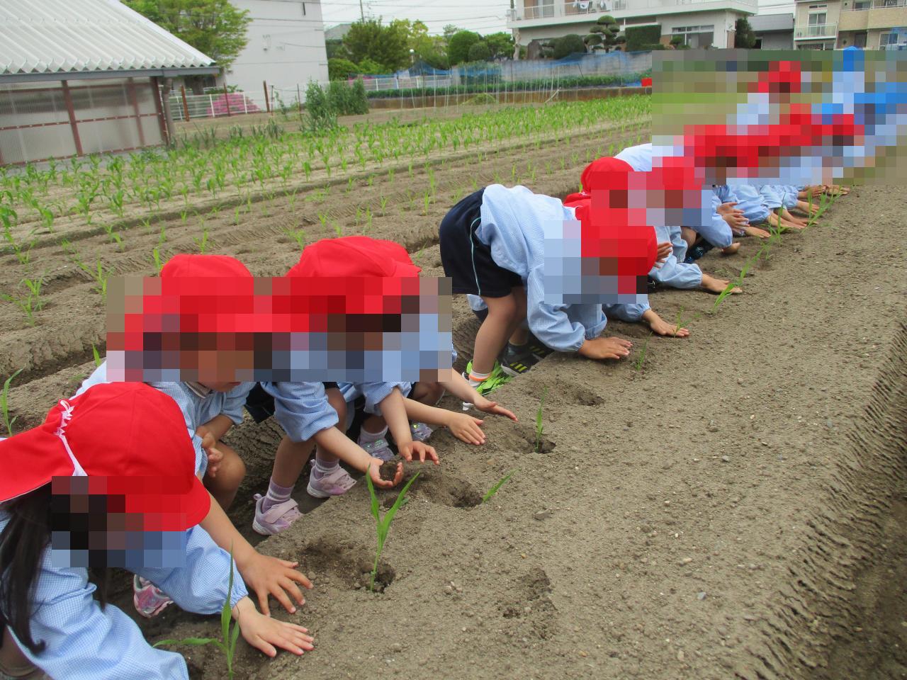また、とうもろこしの苗植えも体験し、苗を両手で大事に抱え「大きくな~れ✨」と願い込め上手に植えることができました😄