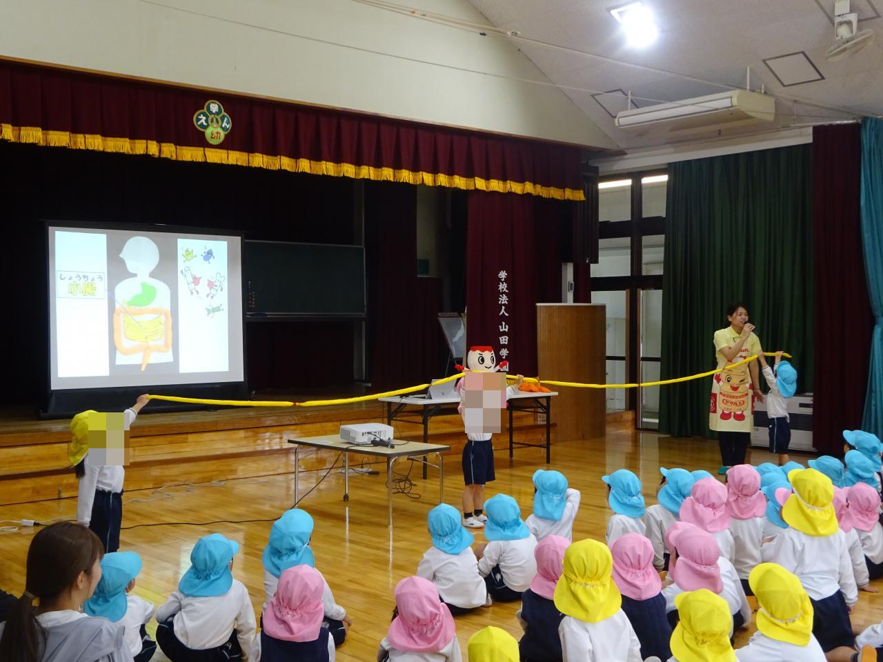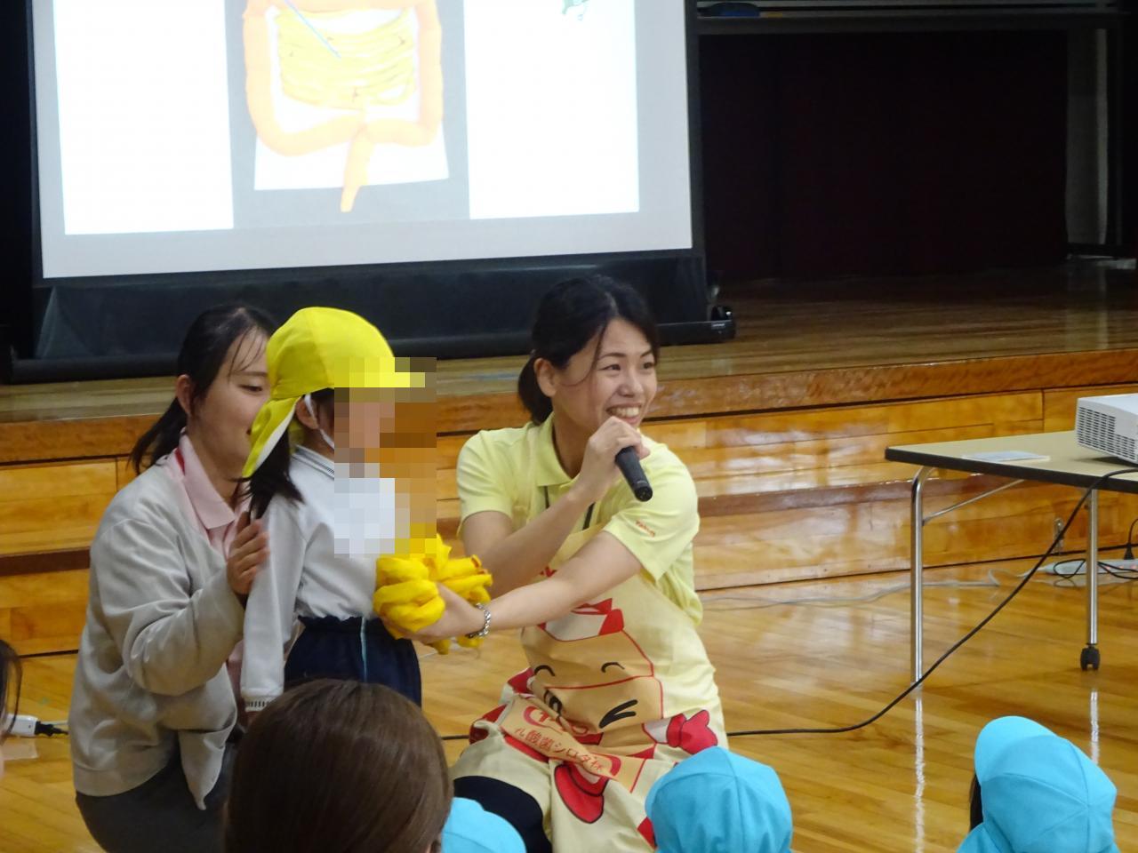 乳酸菌シロタ株マンやビフィズス菌BY株マンなどが登場し、子どもたちは楽しくおなかの中の働きについて学ぶことができました😄