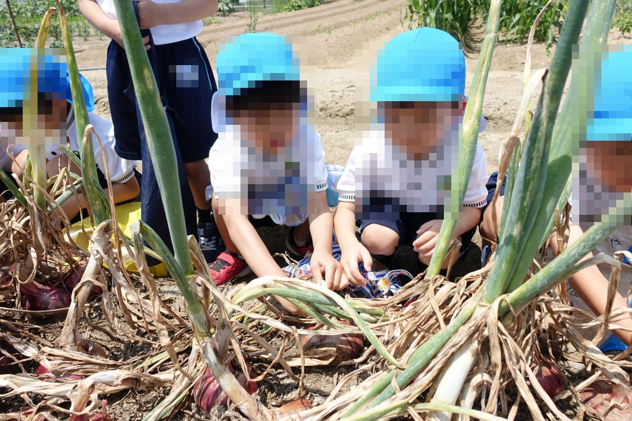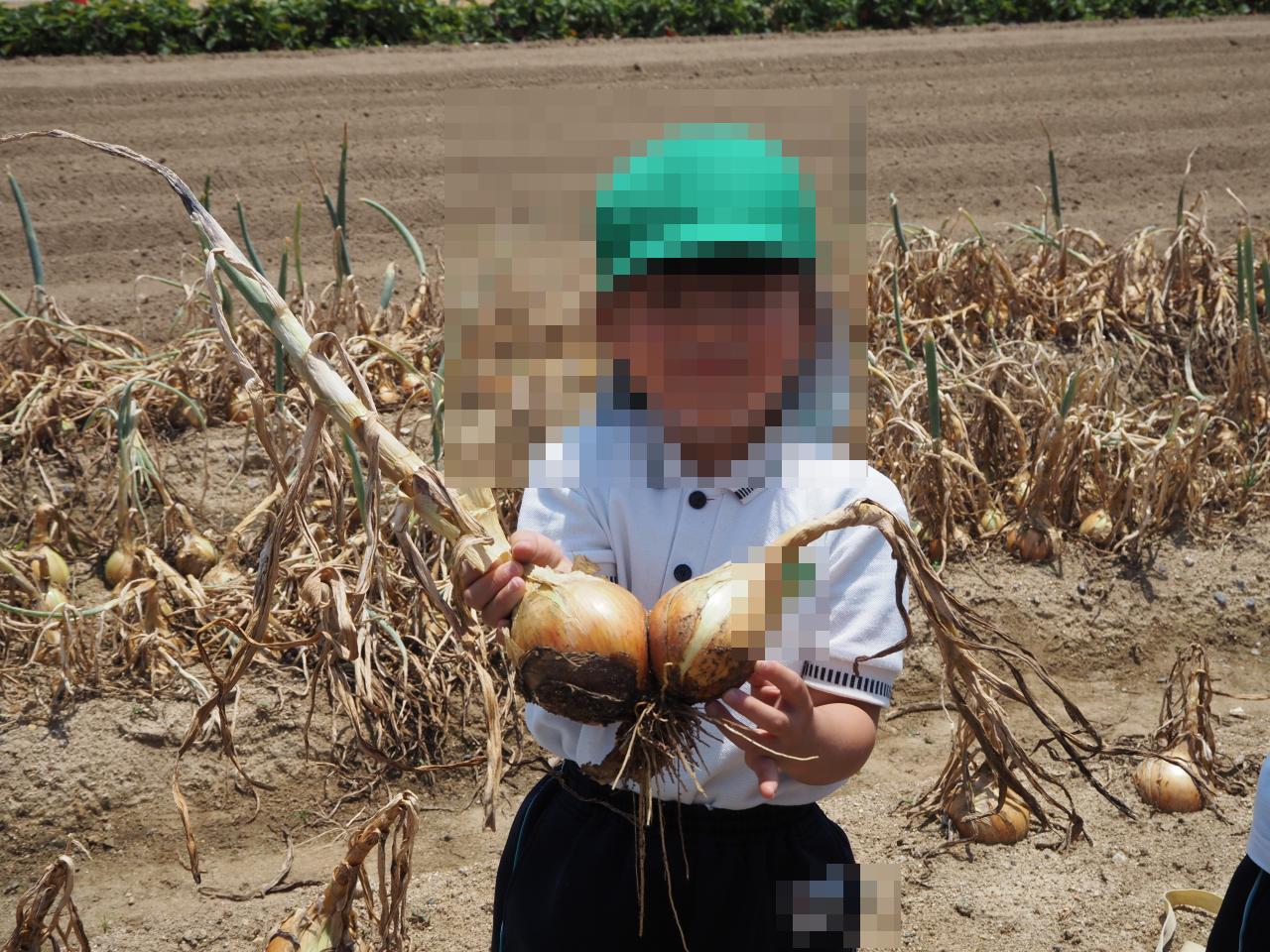 年長児は誕生会後に玉ねぎ収穫に行きました🌞