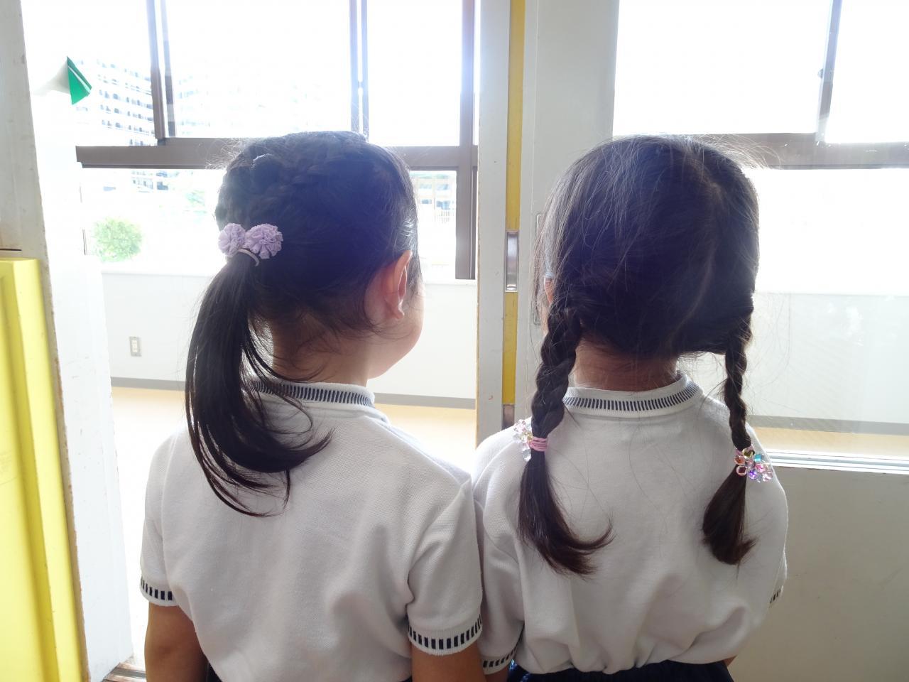 〇プール帽子の中に髪の毛を全て入れますので、髪の毛が長いお子様は、必ずまとめてください。