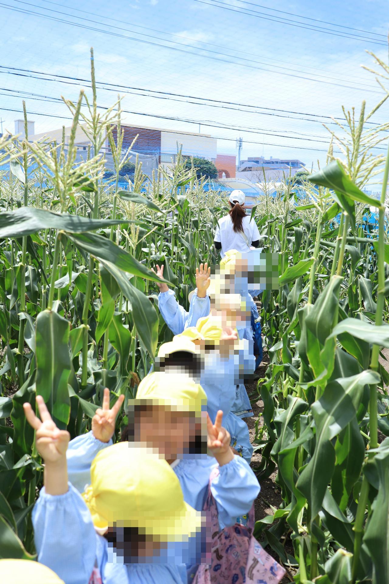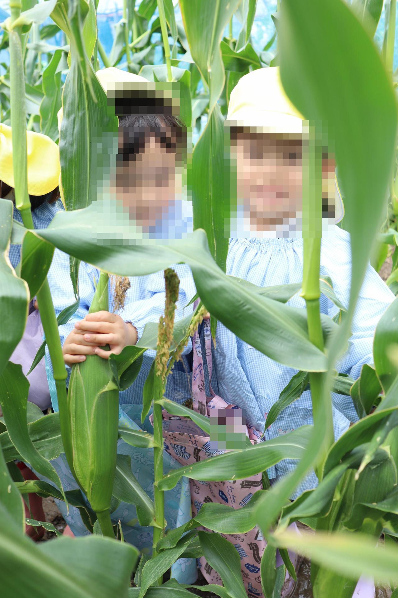 お天気も心配されましたが、無事雨も上がり年中児でとうもろこし収穫に行ってきました🌽