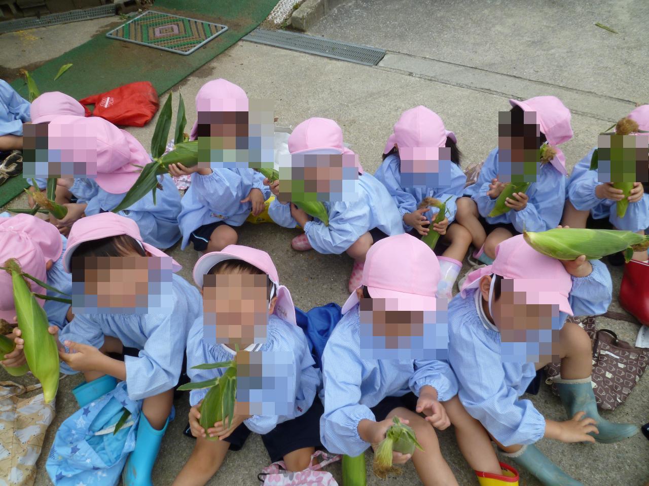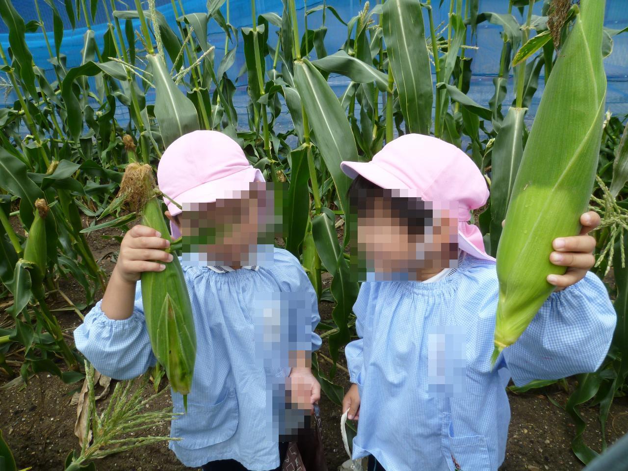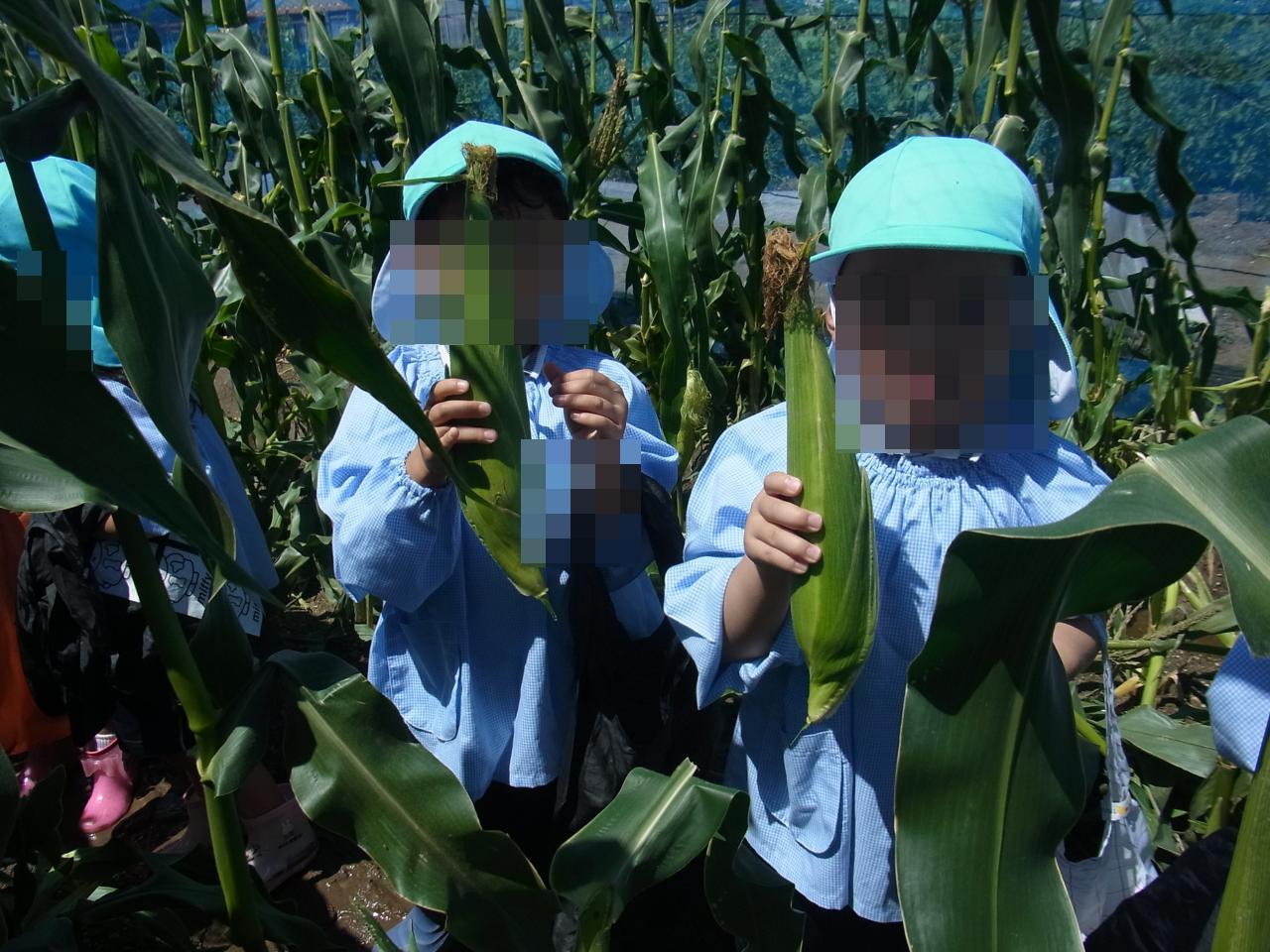 自分の手でとれたとうもろこしを見て「すごいでしょ!」「早く食べたい!」と大喜びの子どもたちでした🙂