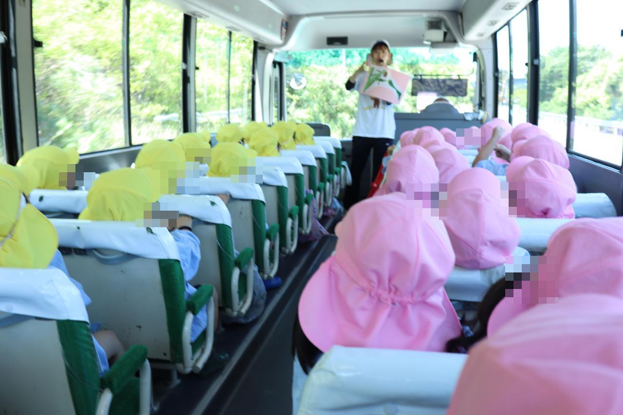 バスの中ではとうもろこしの収穫方法を聞いたり、とうもろこしのクイズをしてあっという間に到着!