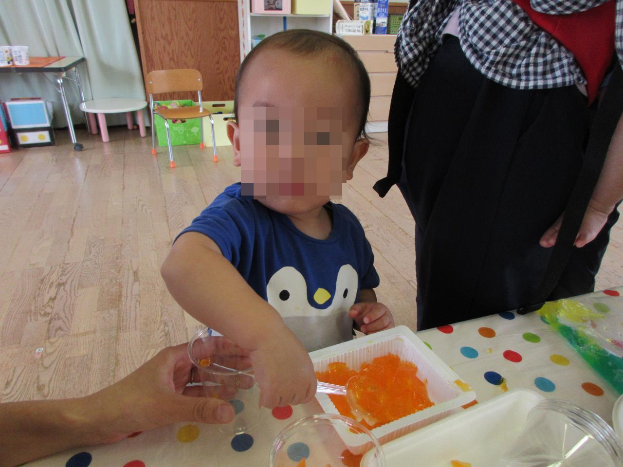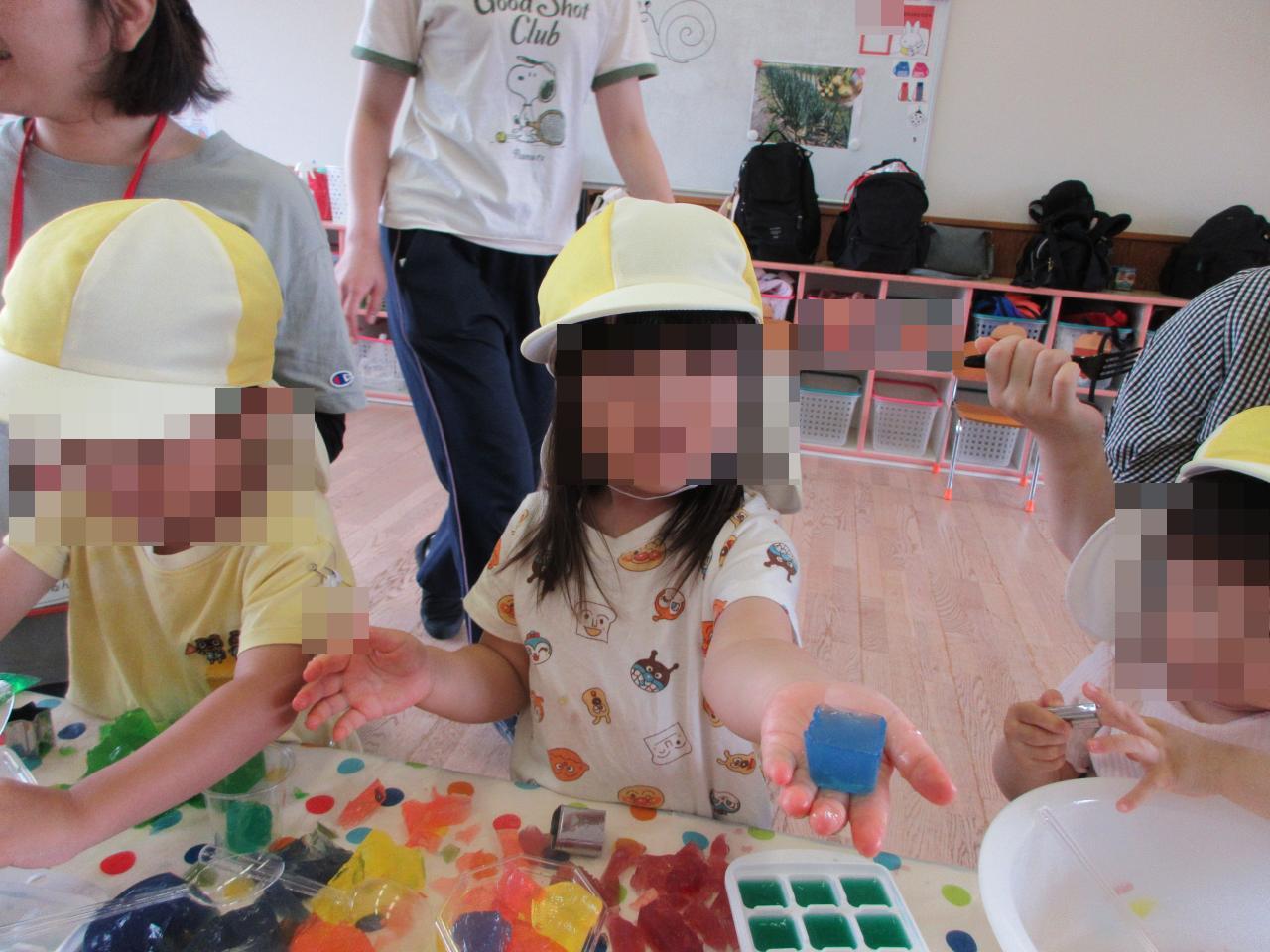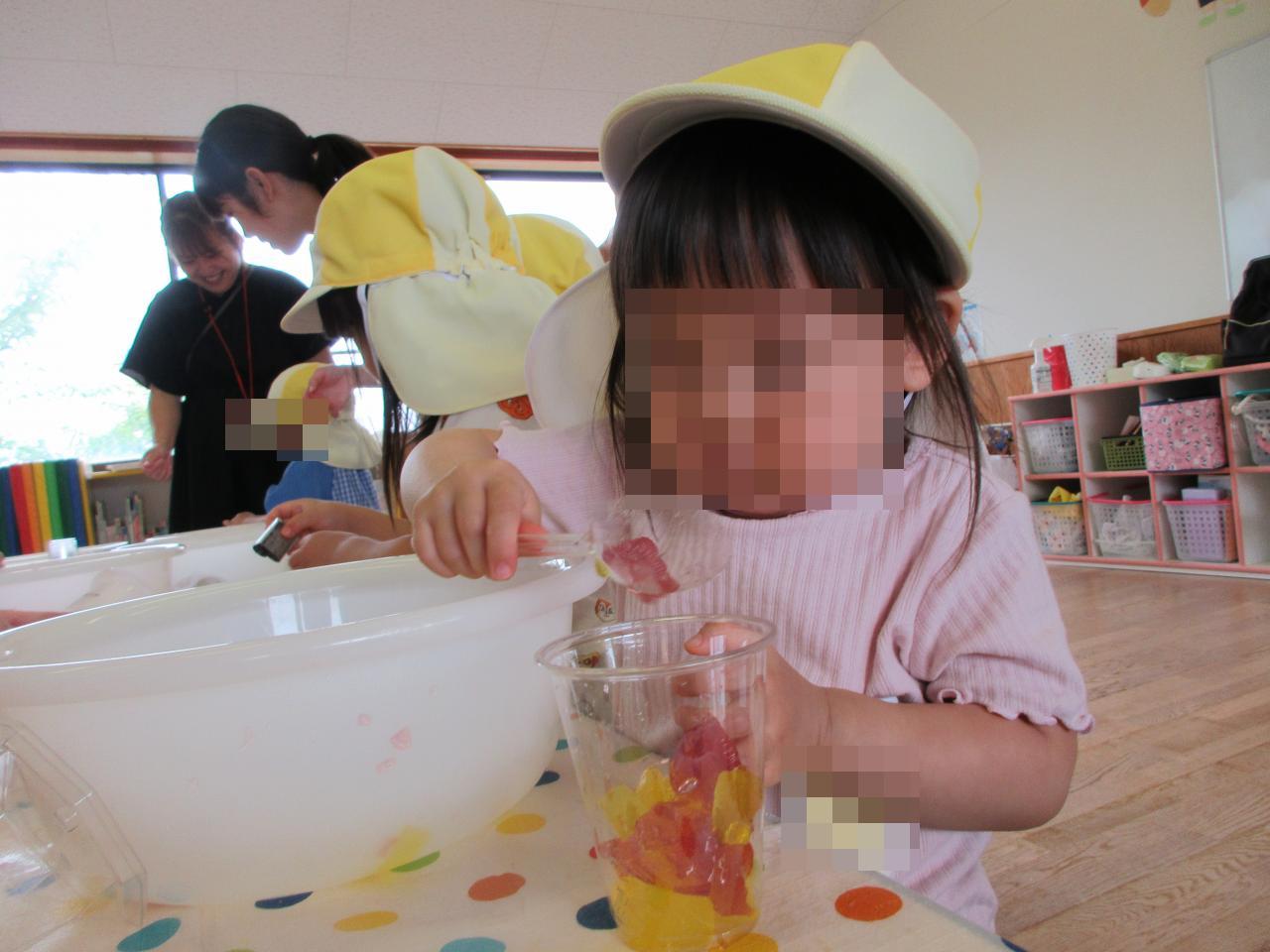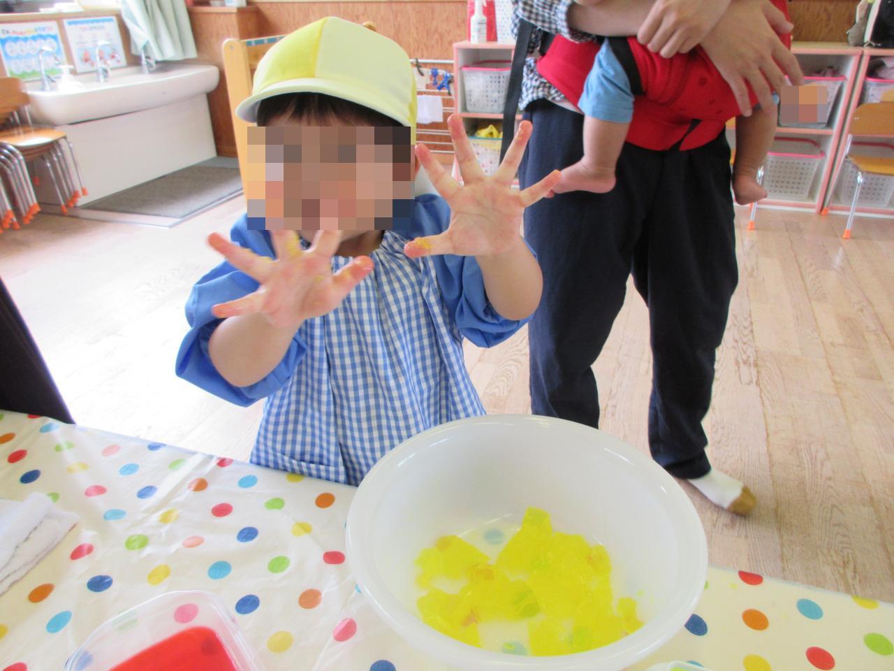 様々な色の寒天を握ったり、混ぜたりして感触を楽しみました✨