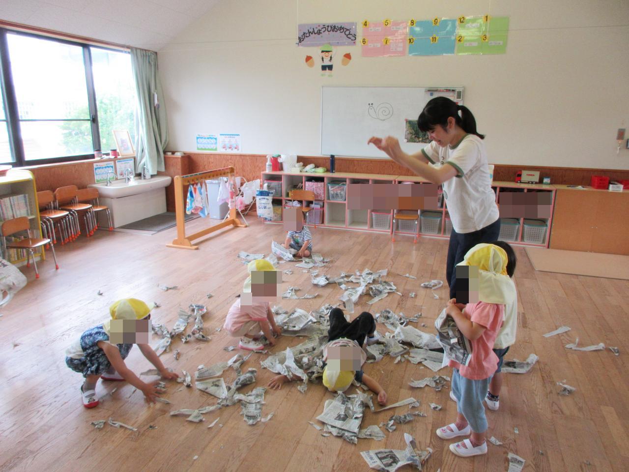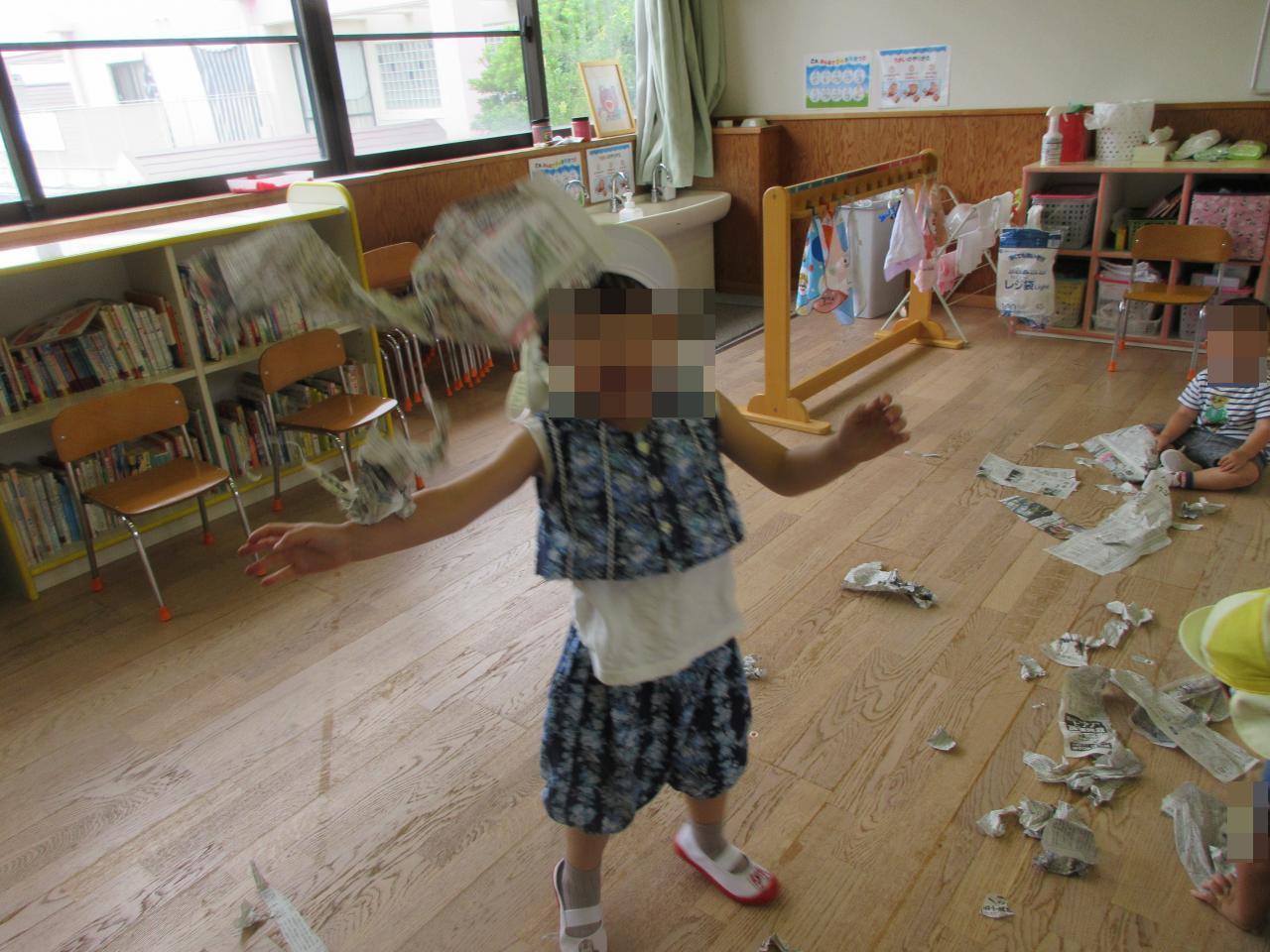 雨の日には、新聞紙遊びも楽しみました😳