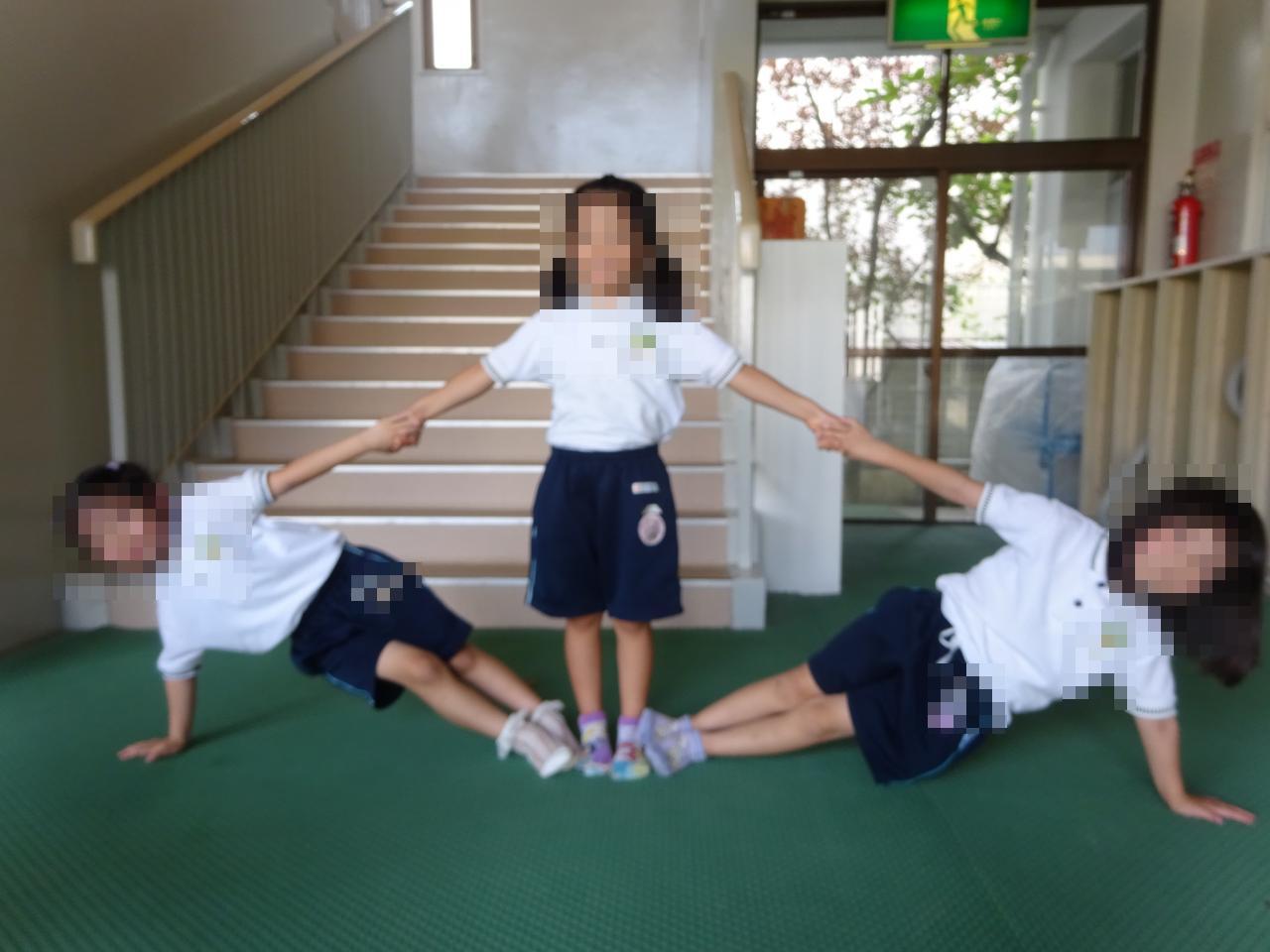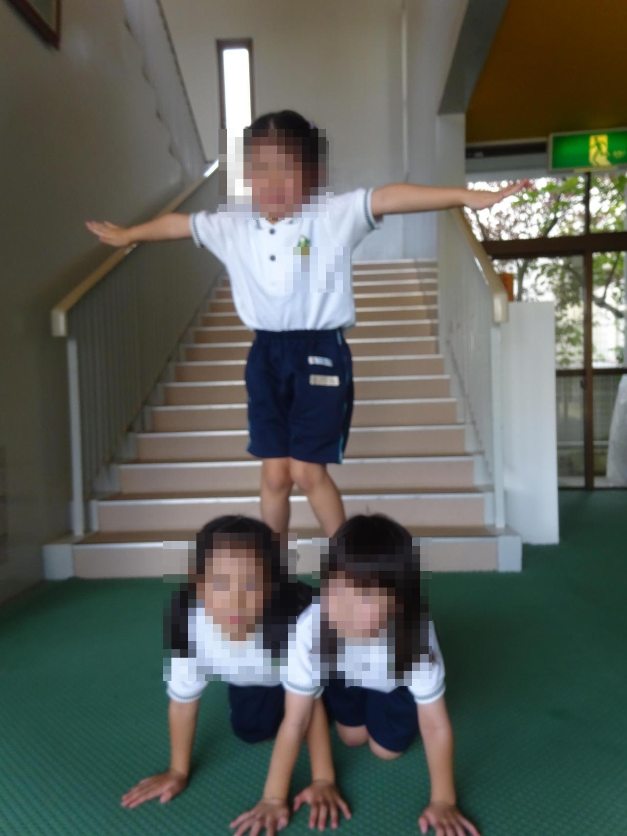 組体操の技の見本のお写真を添付しておりますので、無理のない範囲で練習をお願い致します。