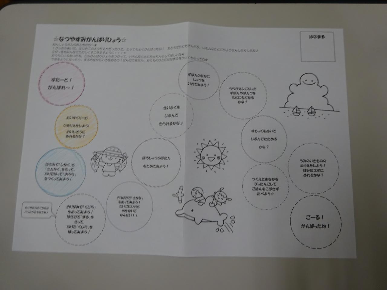 本日、なつやすみがんばりひょうを持ち帰っております。
