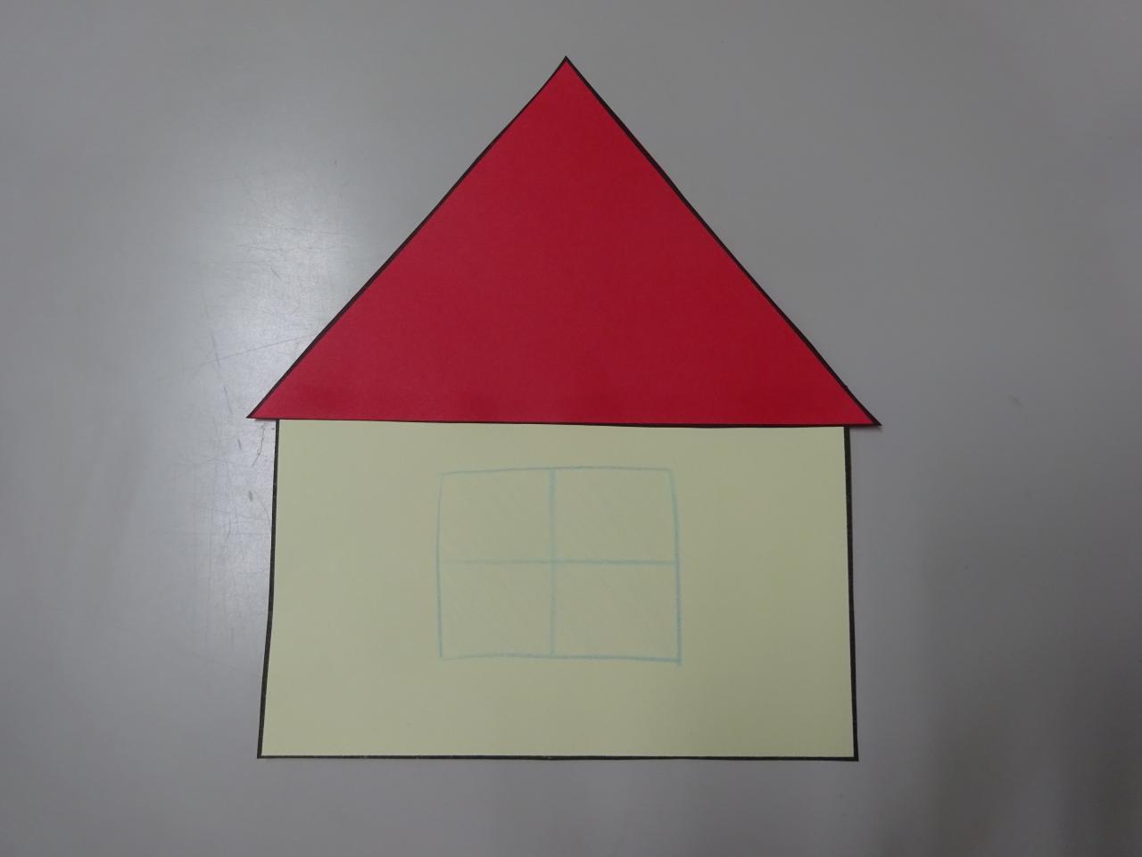 ③四角の上側にのりをつけて、三角の画用紙を貼ります。
