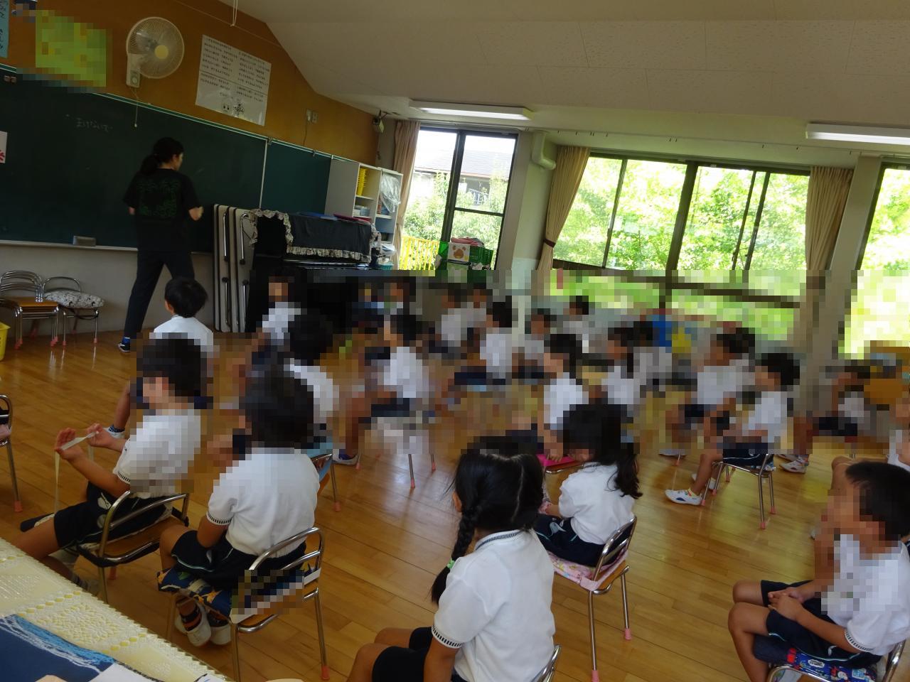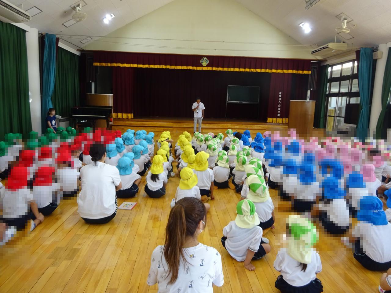 始業式では園長先生のお話があり、「嘘をつかないこと」「素直に謝ること」「約束を守ること」3つのお約束について聞きました。