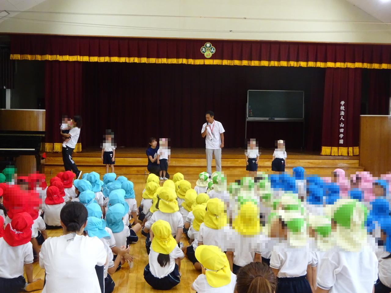 9月から新しいお友達も増え、年少さんよりも一つ小さい満3歳のお友達が5人になり、園長先生に紹介してもらいました✨