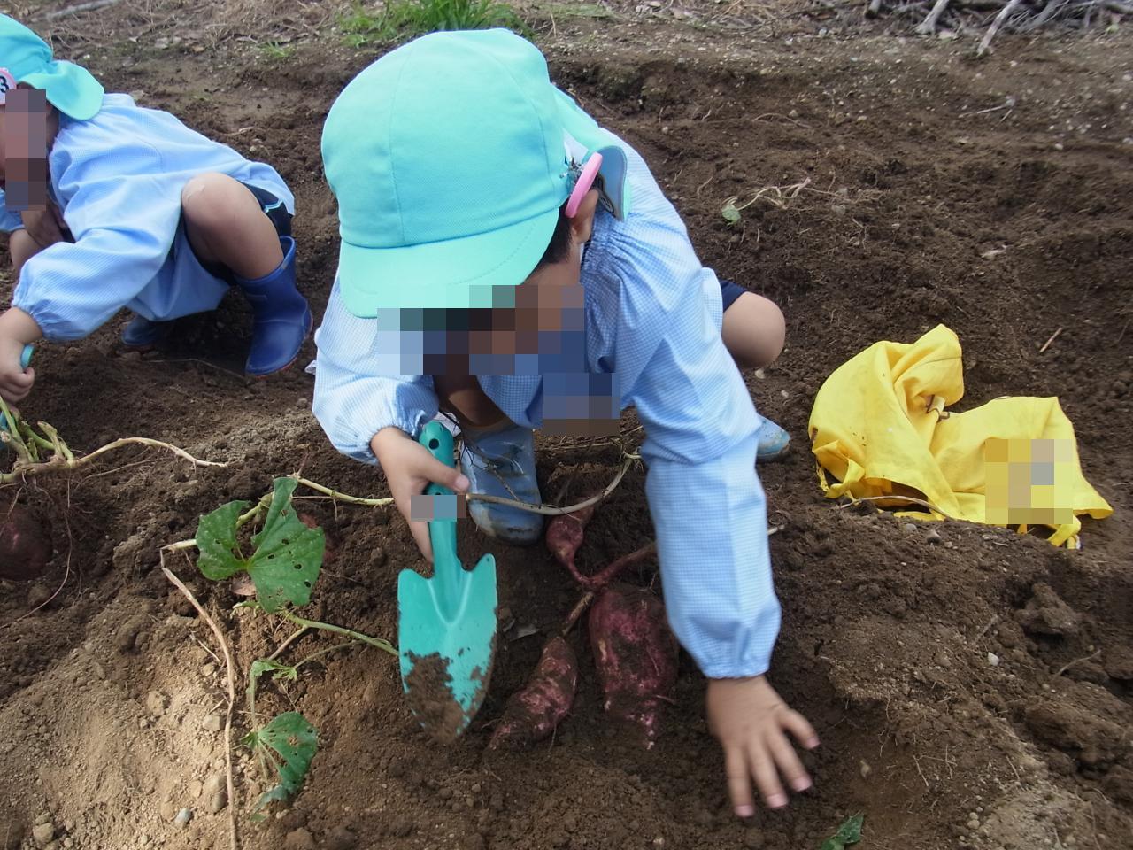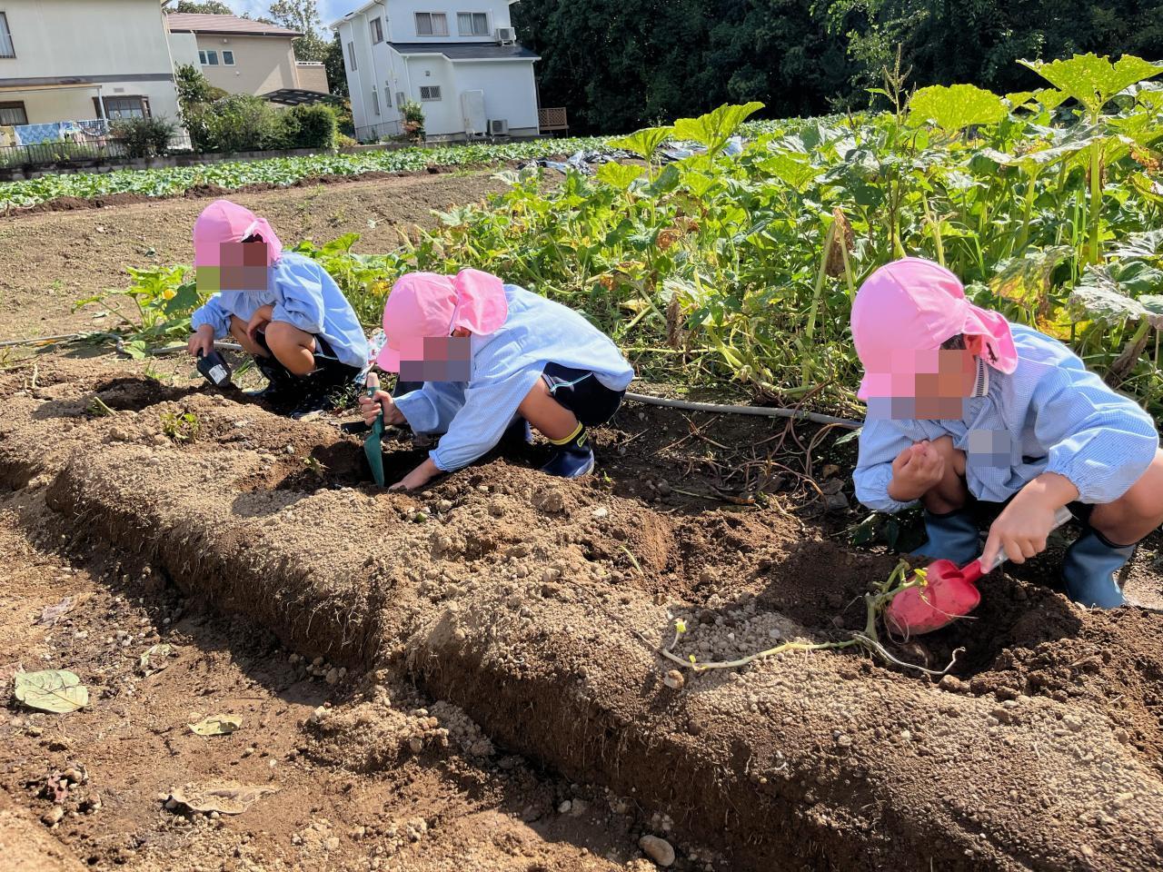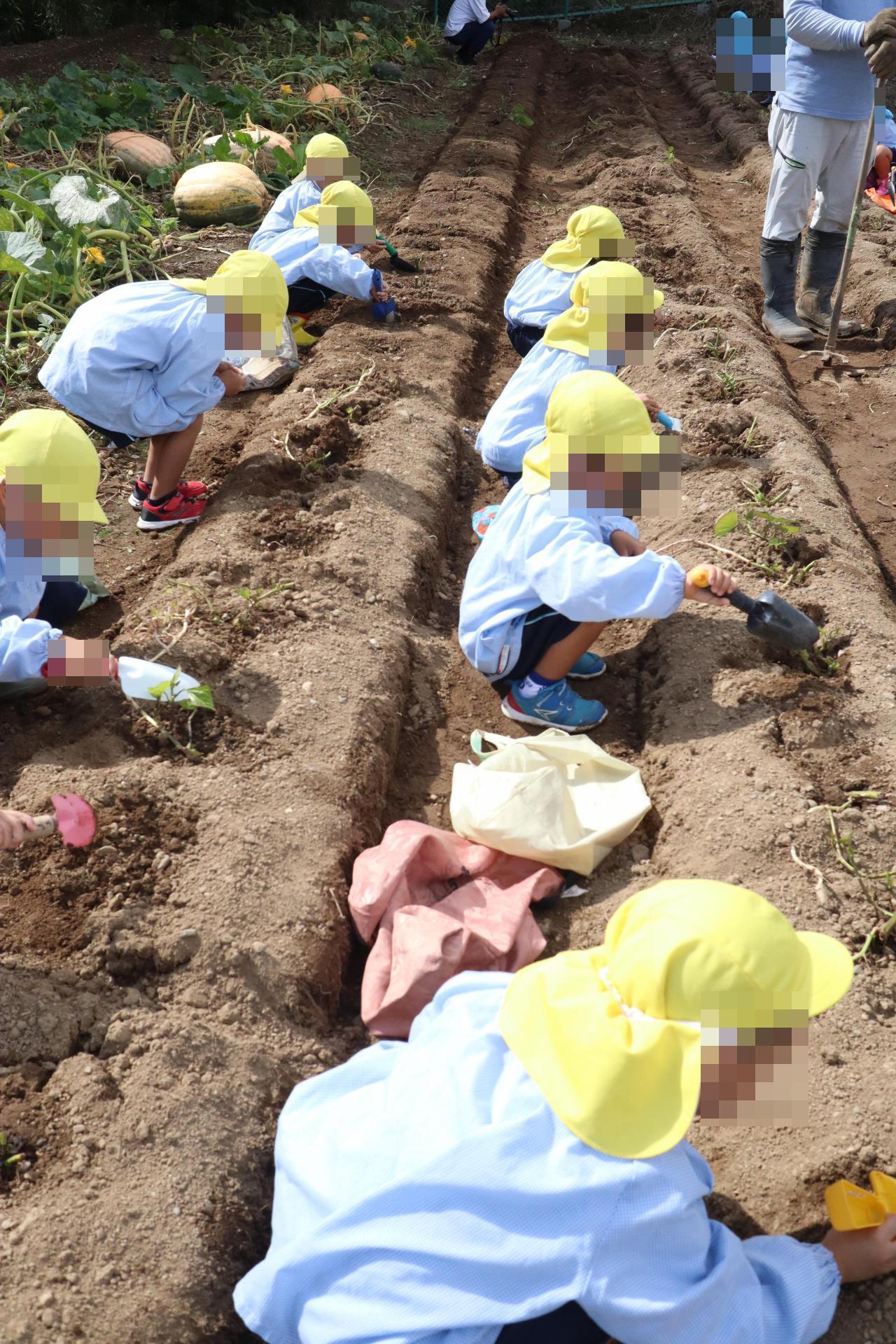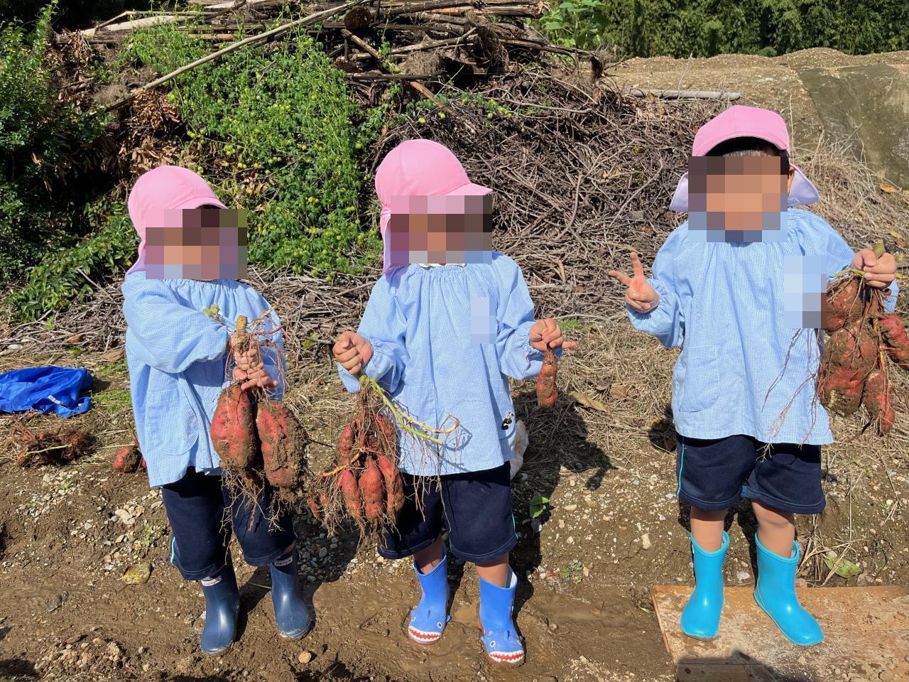 お天気も心配されましたが、無事晴れて年中児でさつまいも収穫に行きました🤩