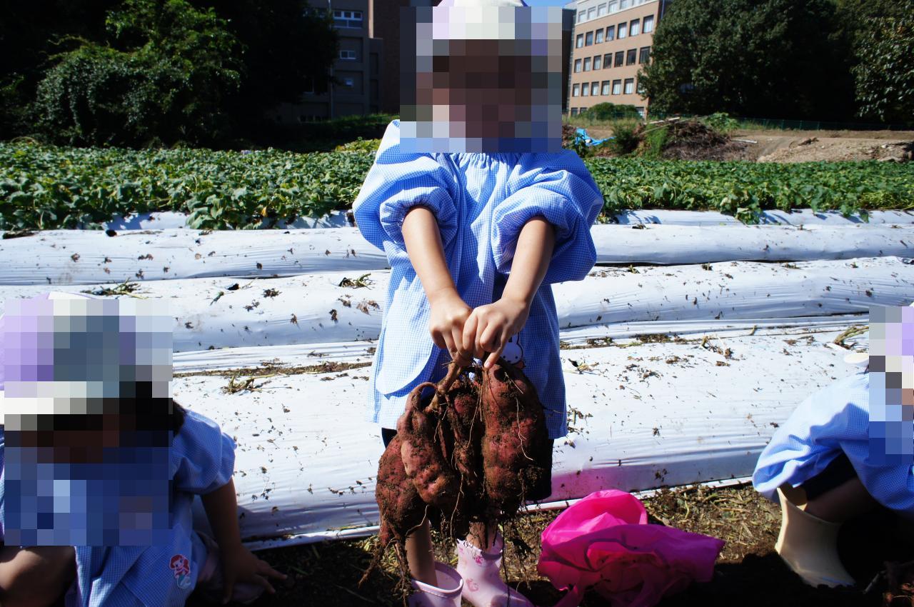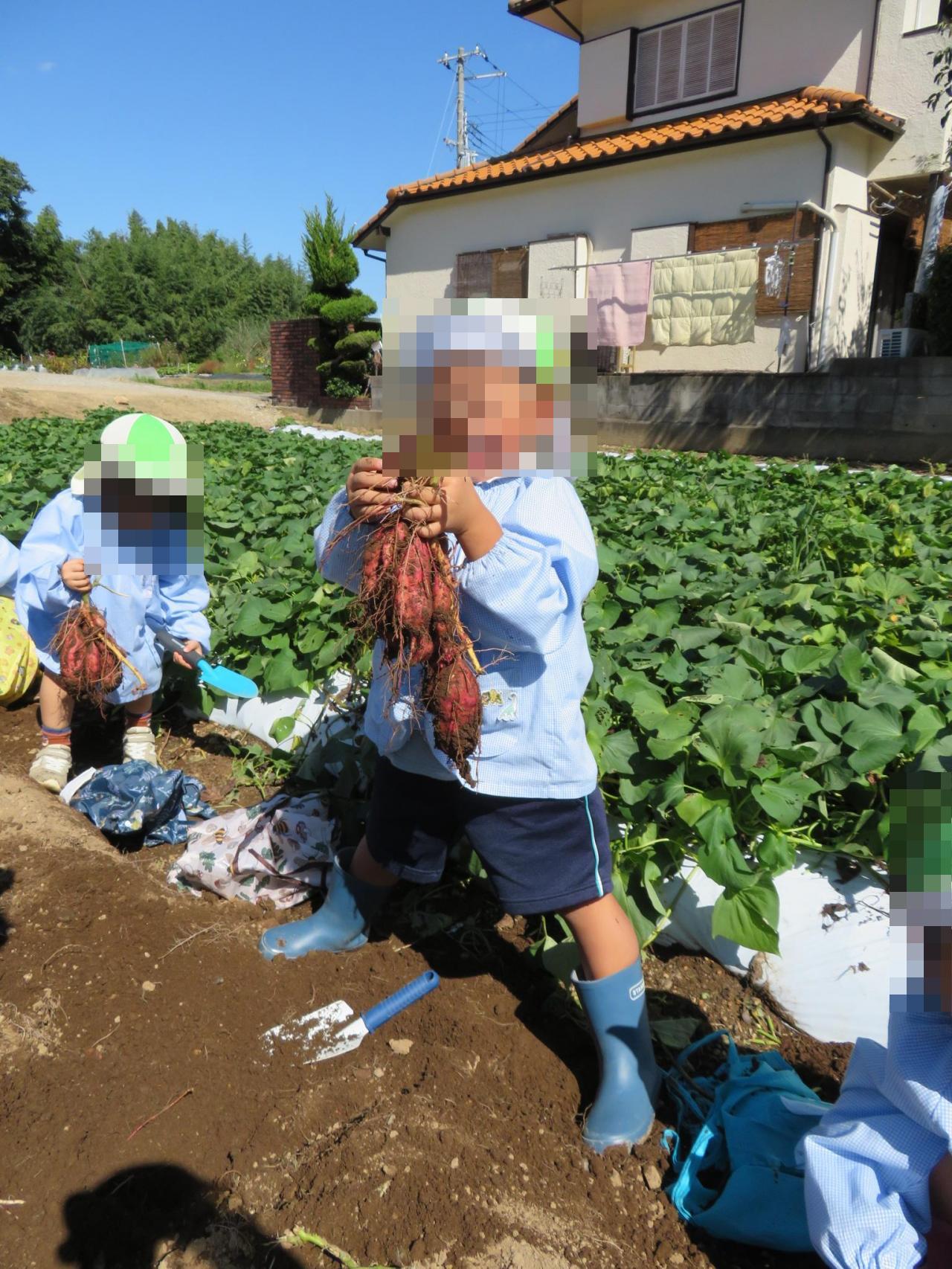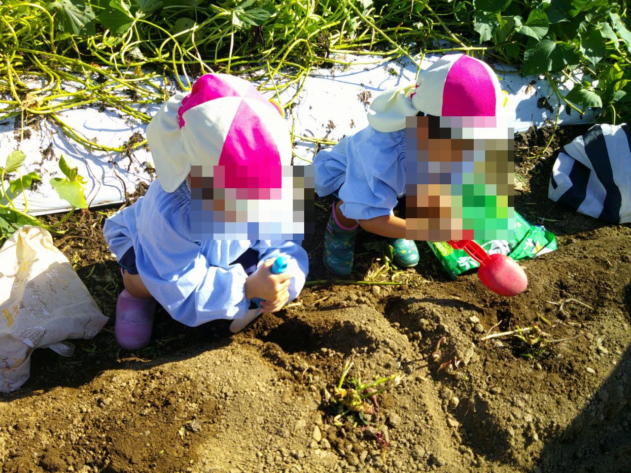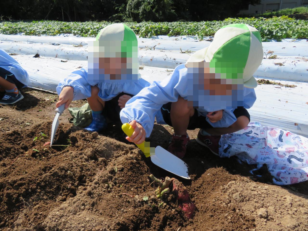 スコップを使って上手に掘ることができました✨たくさん掘ってさつまいもが見えてくると、「さつまいもあった~!」と大喜びでした😆