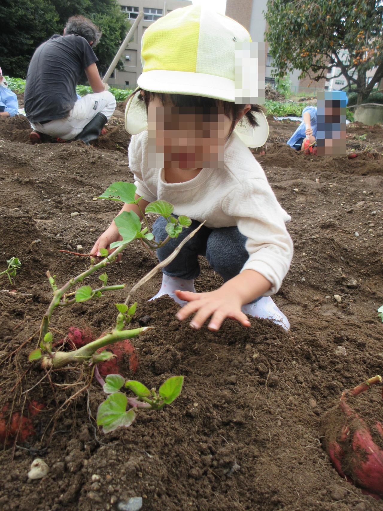 畝から見えているさつまいもを見つけると「これとっていいの??」と待ちきれない様子でした😆