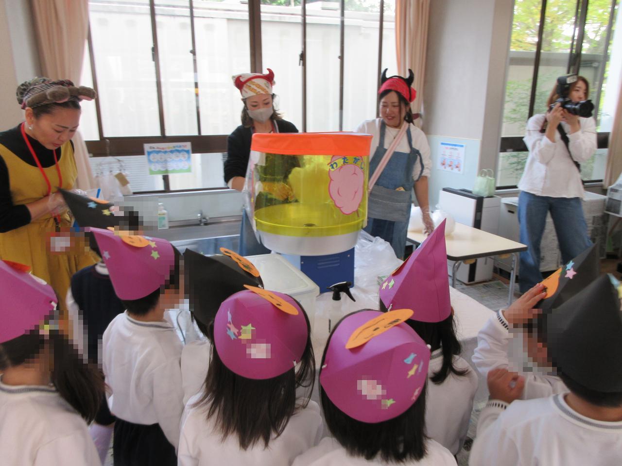 綿菓子が出来上がる様子を見せてもらい、子どもたちは大興奮‼