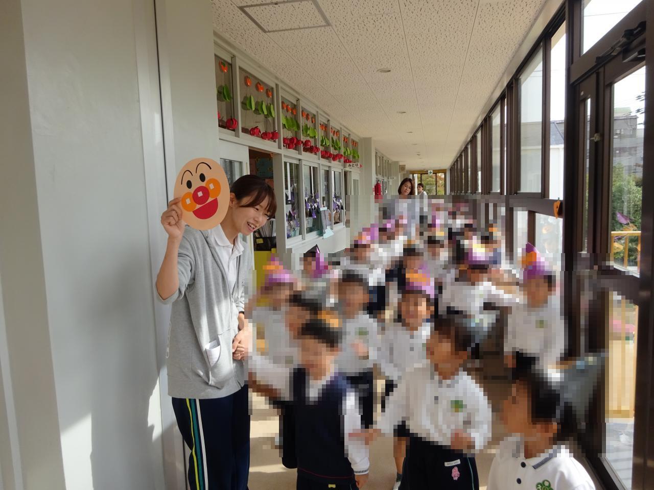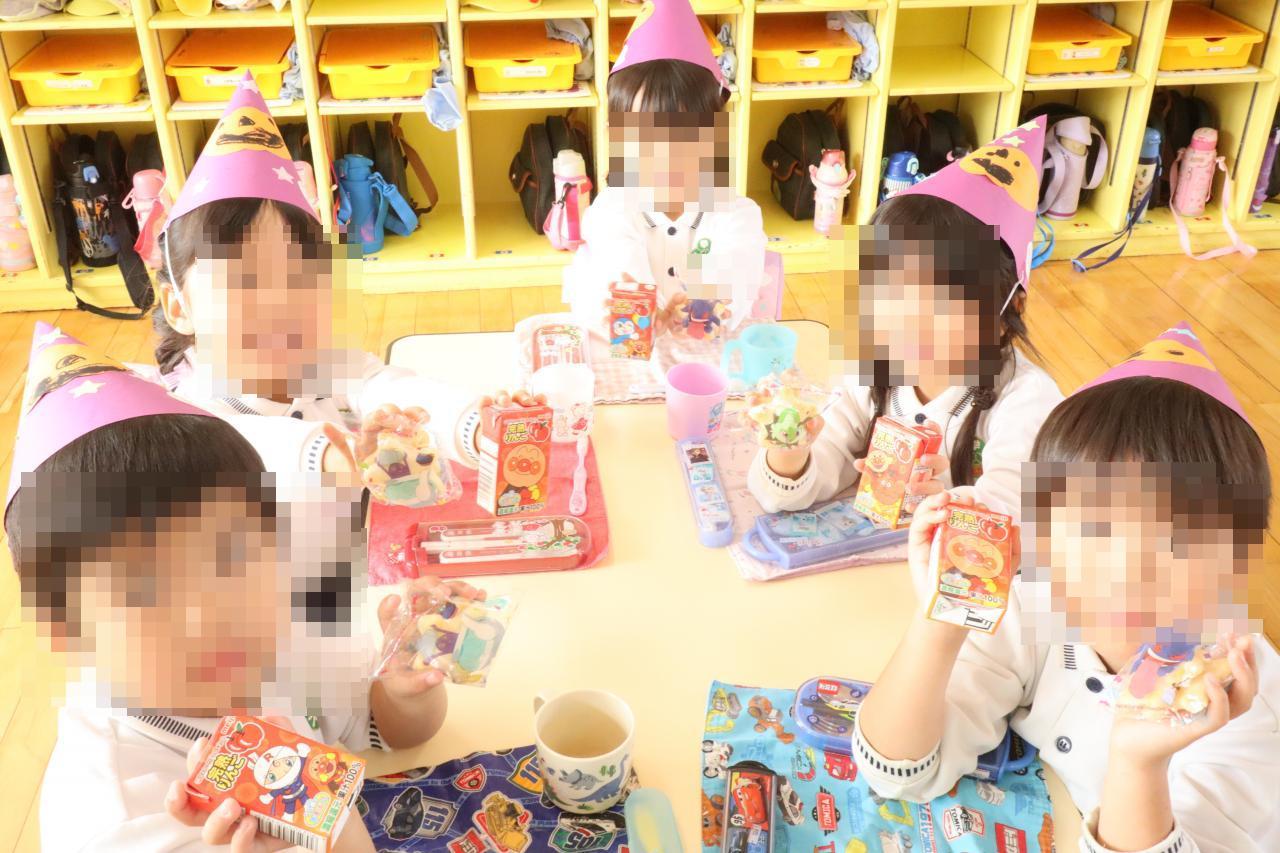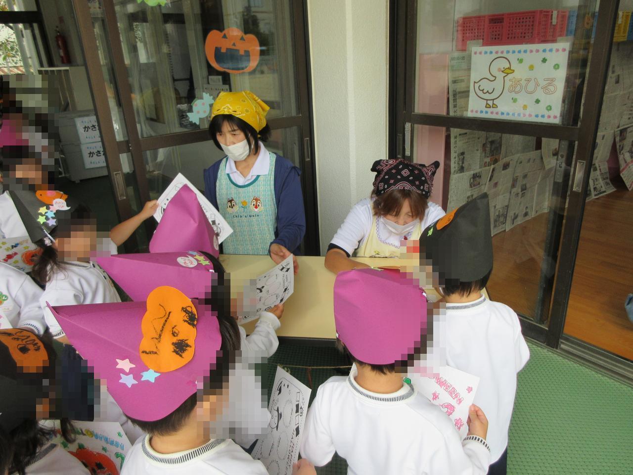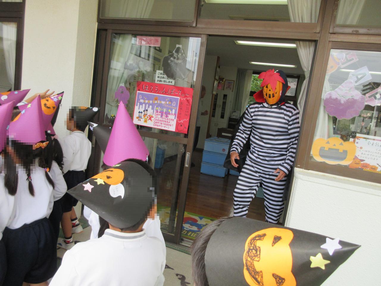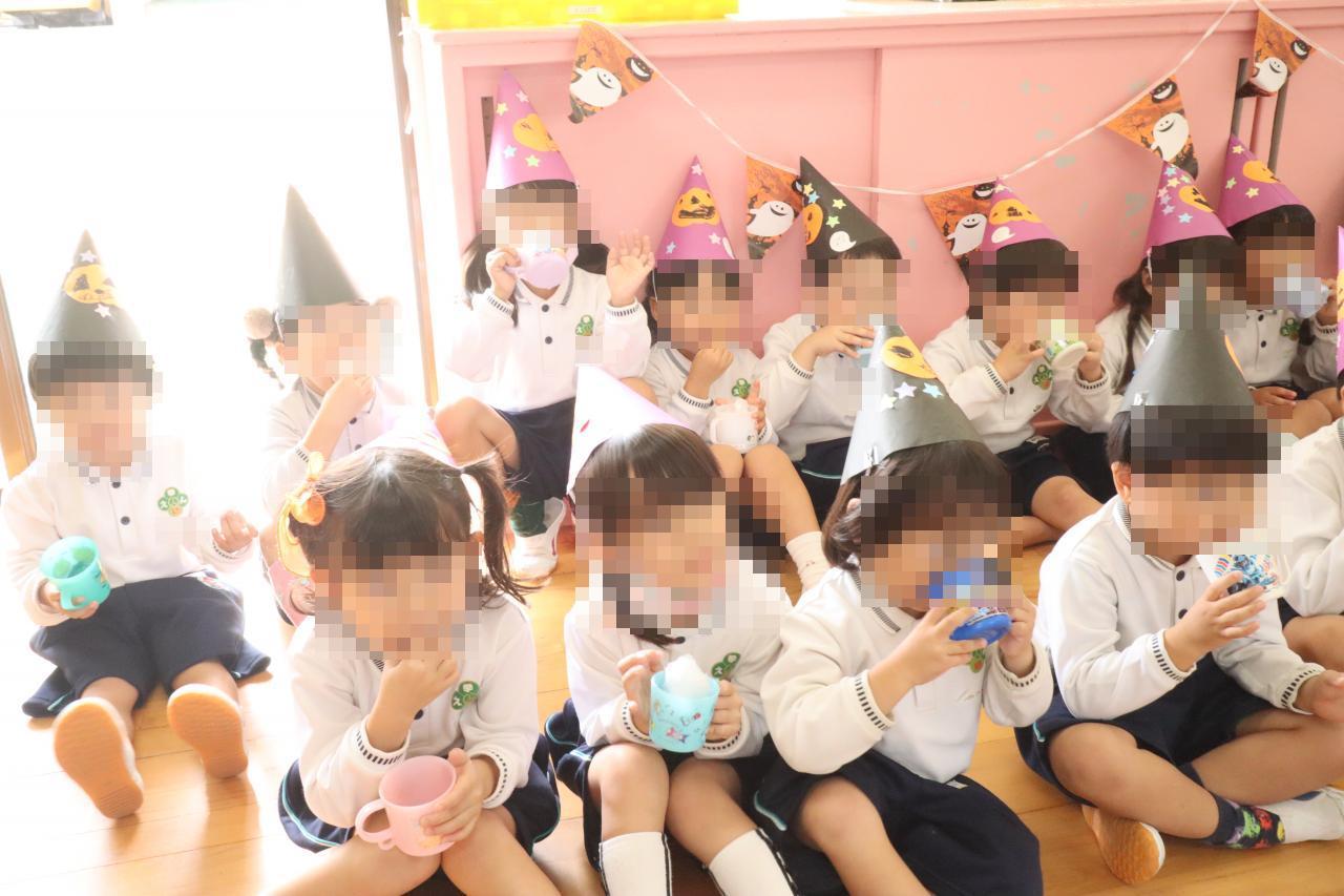 仮装をした園長先生におやつとジュースを貰い、「ありがとう!」「早く食べたいー!」と嬉しそうでした😝