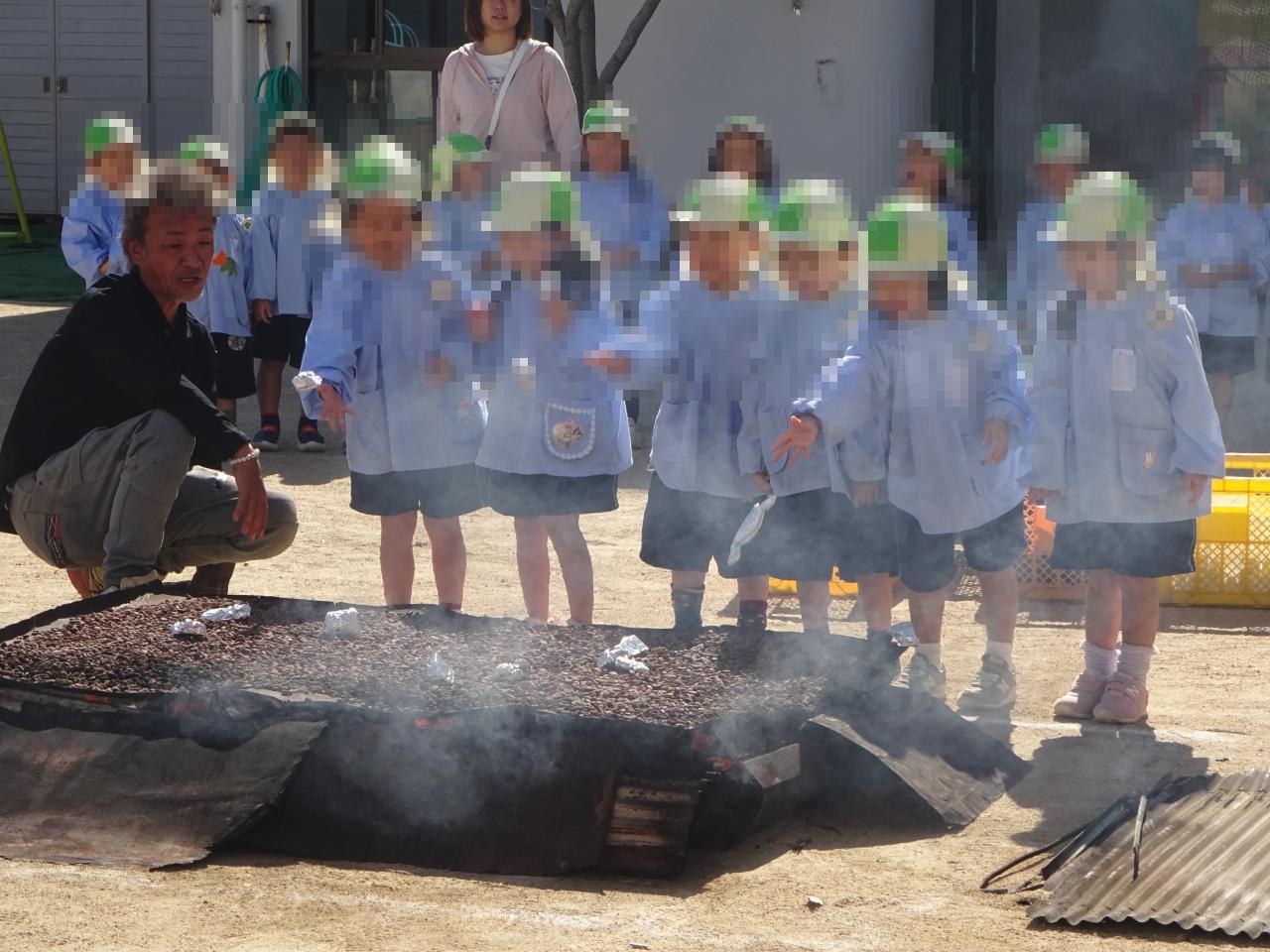 登園した子どもたちは、「今日はやきいもだ~」「いい匂いしてきたね♪」とワクワクした様子でした😆